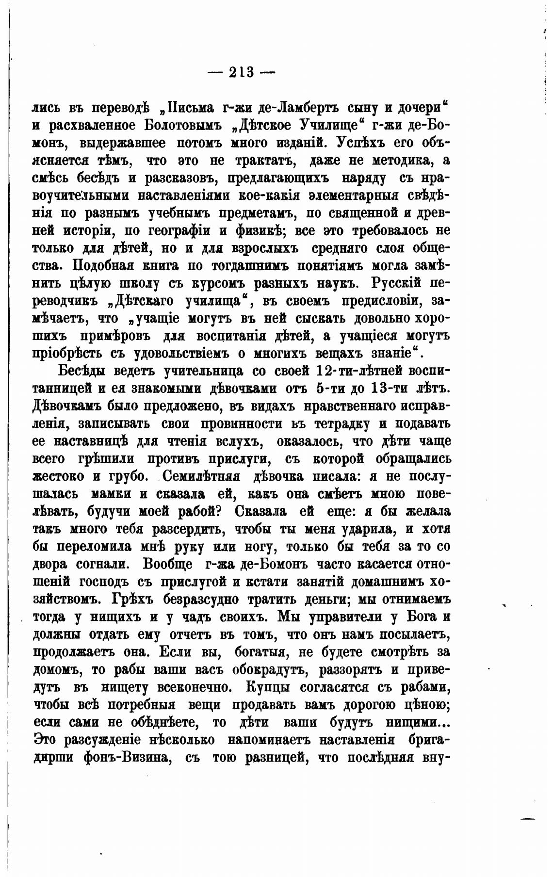 и расхваленное Болотовымъ „Д'ђтсвое Училище“ г-жи де-Бо-