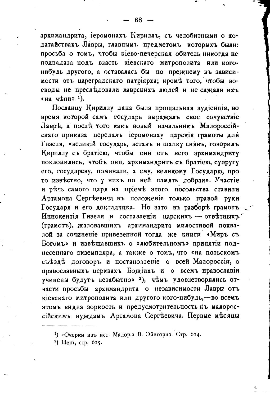 1) «Очерки изъ ист. Малор.» В. Эйнгорна. Стр. 614.