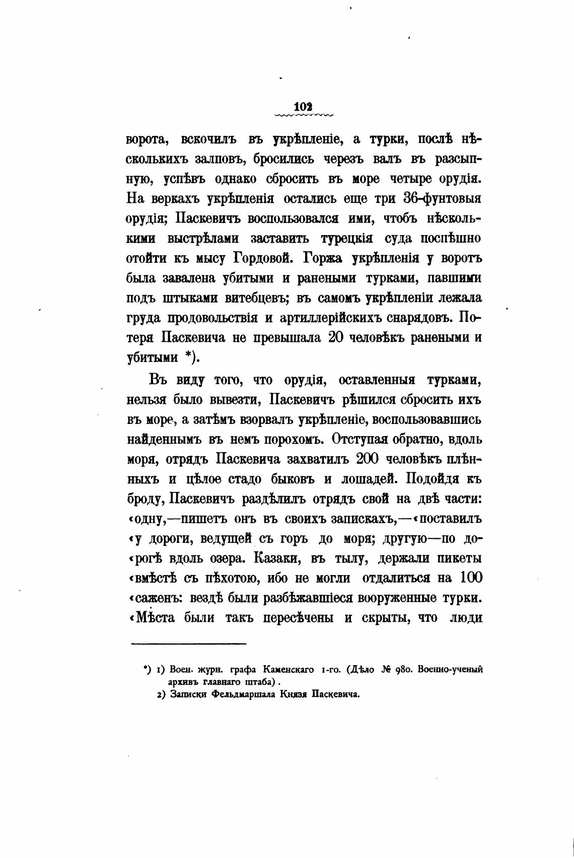 теря Паскевича не првышала 20 человВкъ ранеными и