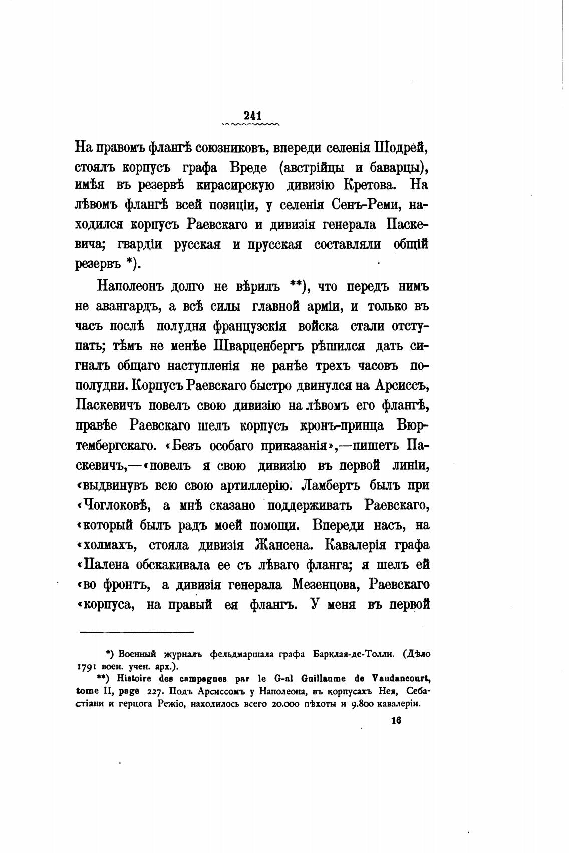 *) ВтнныЙ журналь фельдмаршала графа Барклая-де-Толли. (Д•Ьло