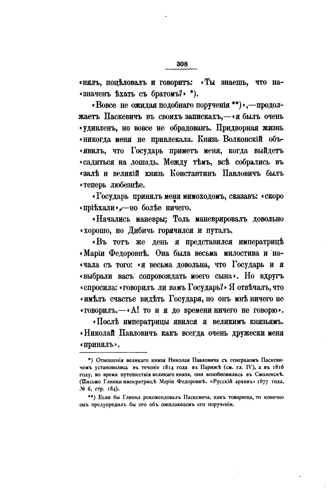 **) Если бы Глинка рекомендовалъ Паскевича, какъ товарища, то конечно