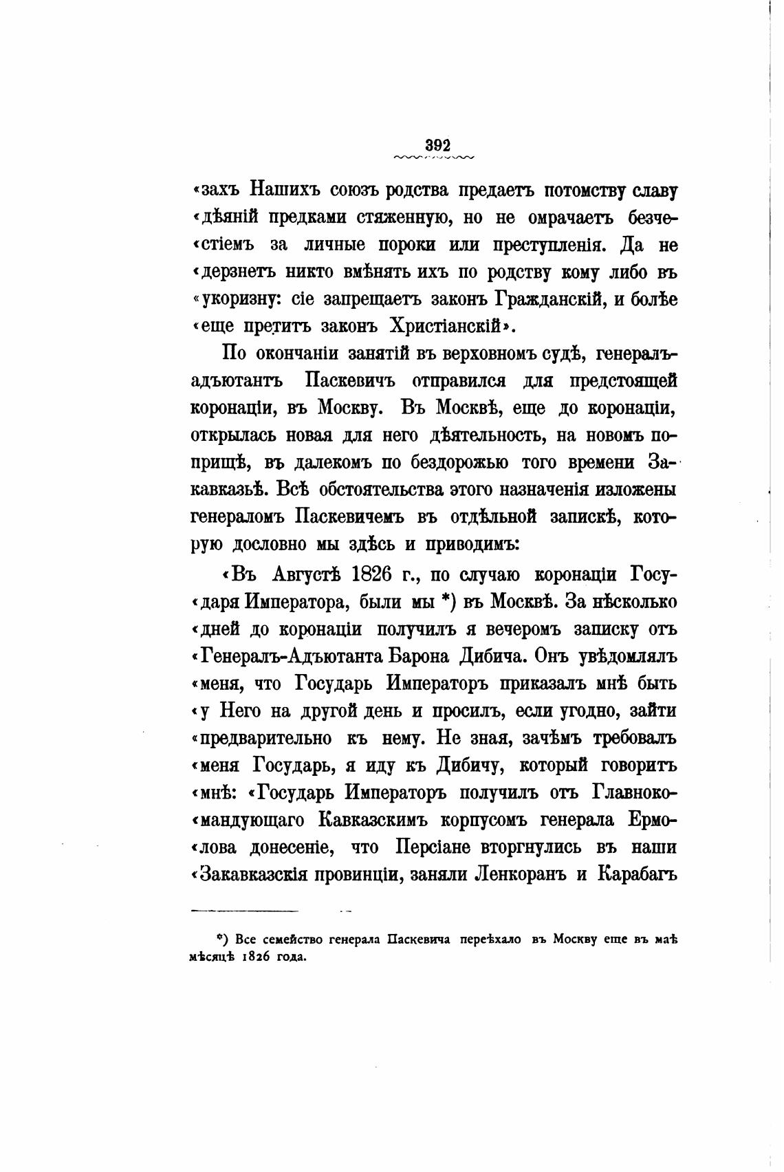 т) Все семейство генерала Паскевича пере•Ьхио въ Москву erne въ ма•К