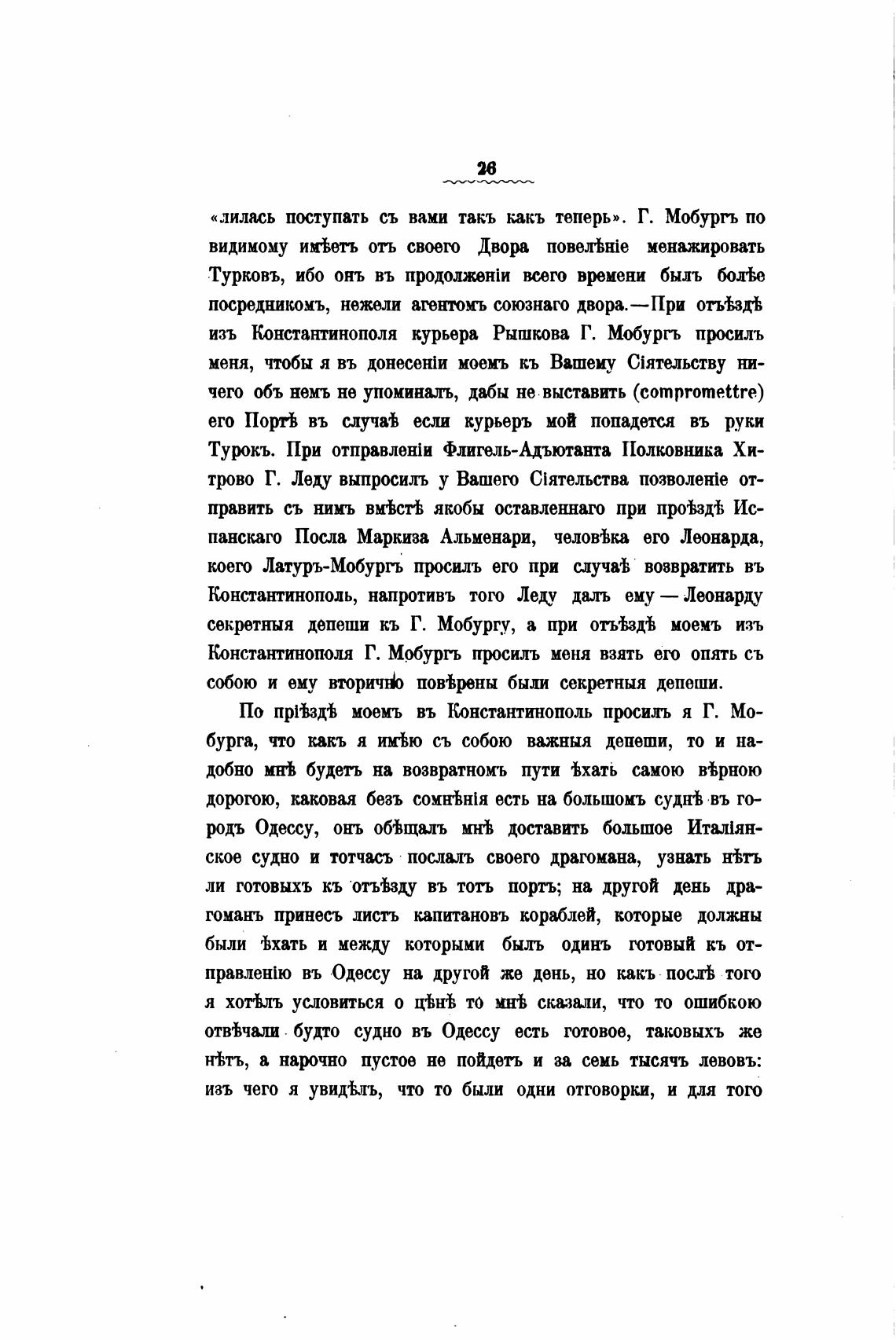 секретныя депеши кь Г. Мобургу, а при отыћ.здгћ моемъ изъ