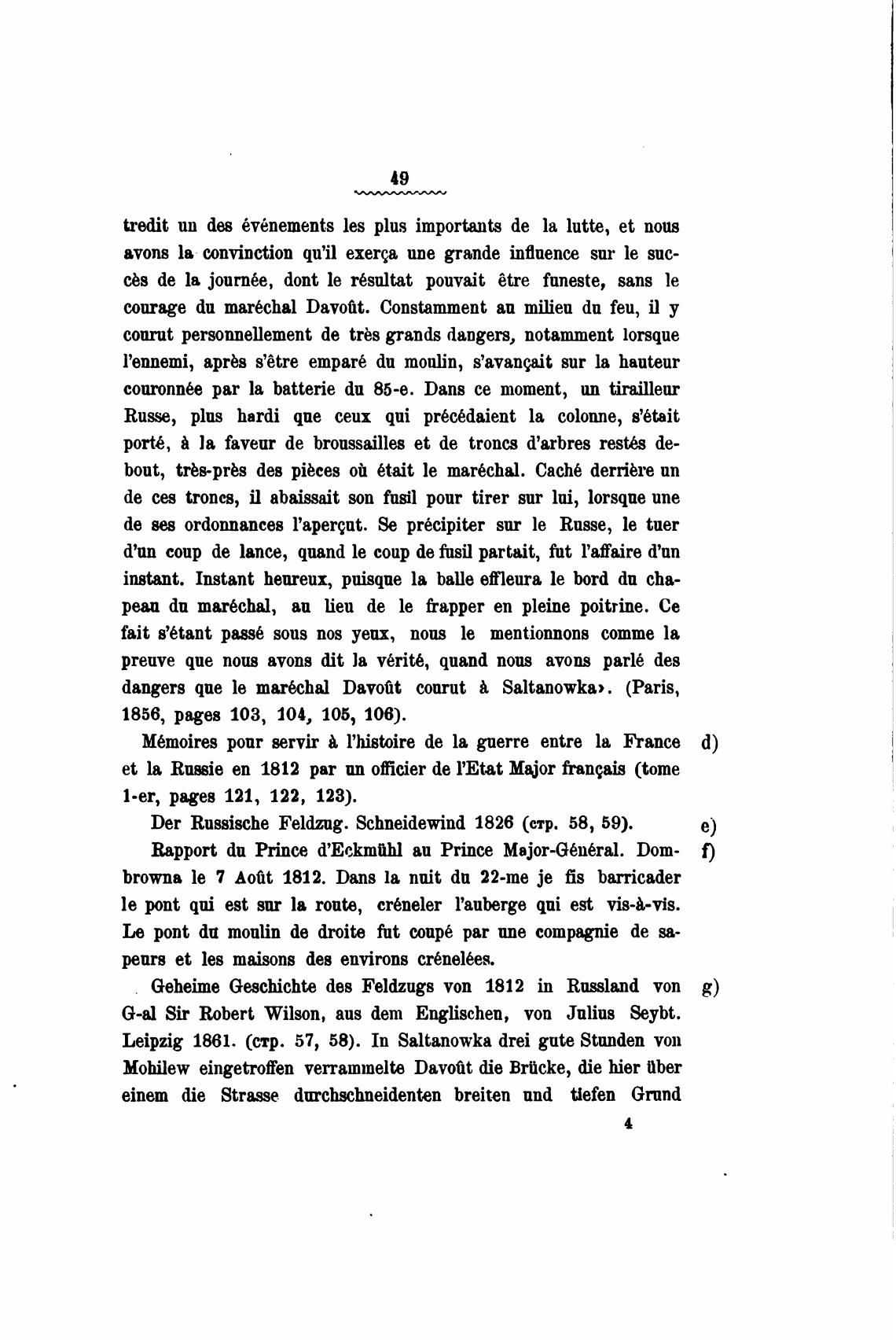 dangers que le mar&hal Davott courut Saltanowka». (Paris,