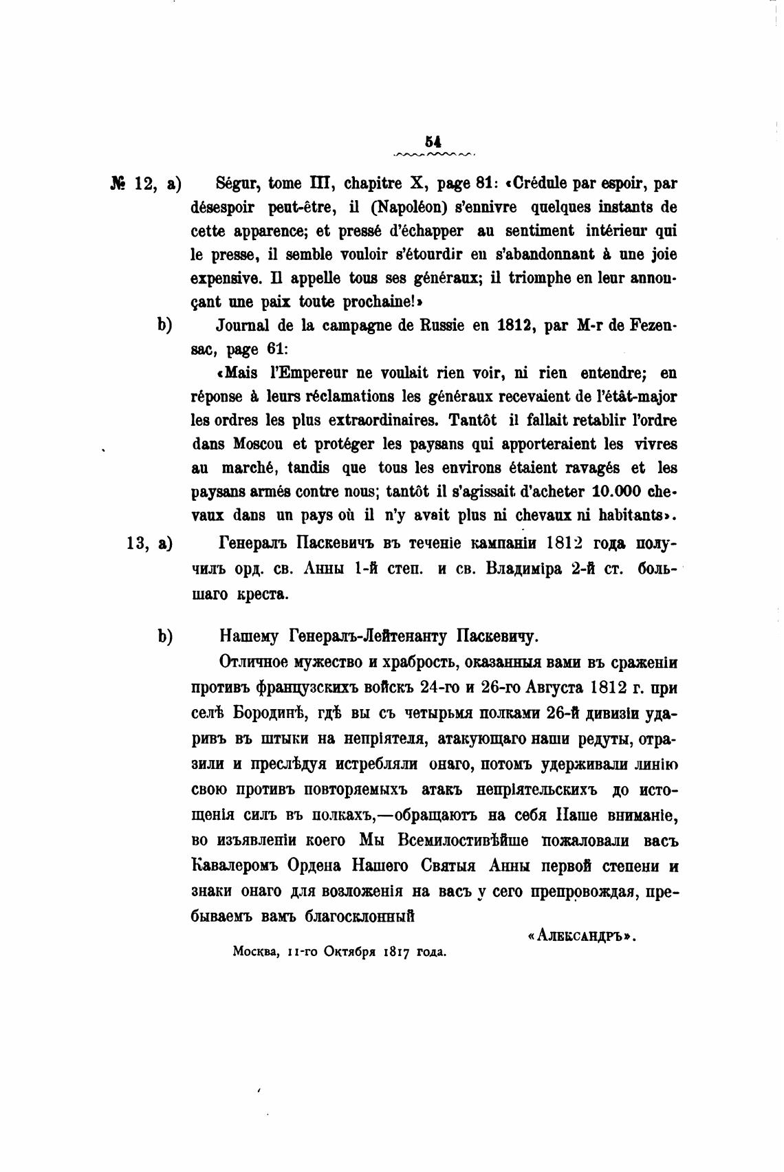Ь) Journal de la сатрадпе de RuBie еп 1812, par M-r de Fezen•