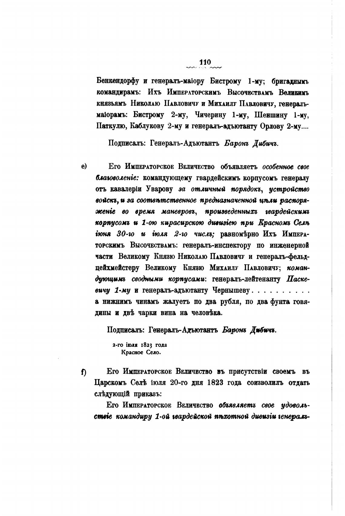 Подписалъ: Генериъ-Адъютанть Баронб Дибича.