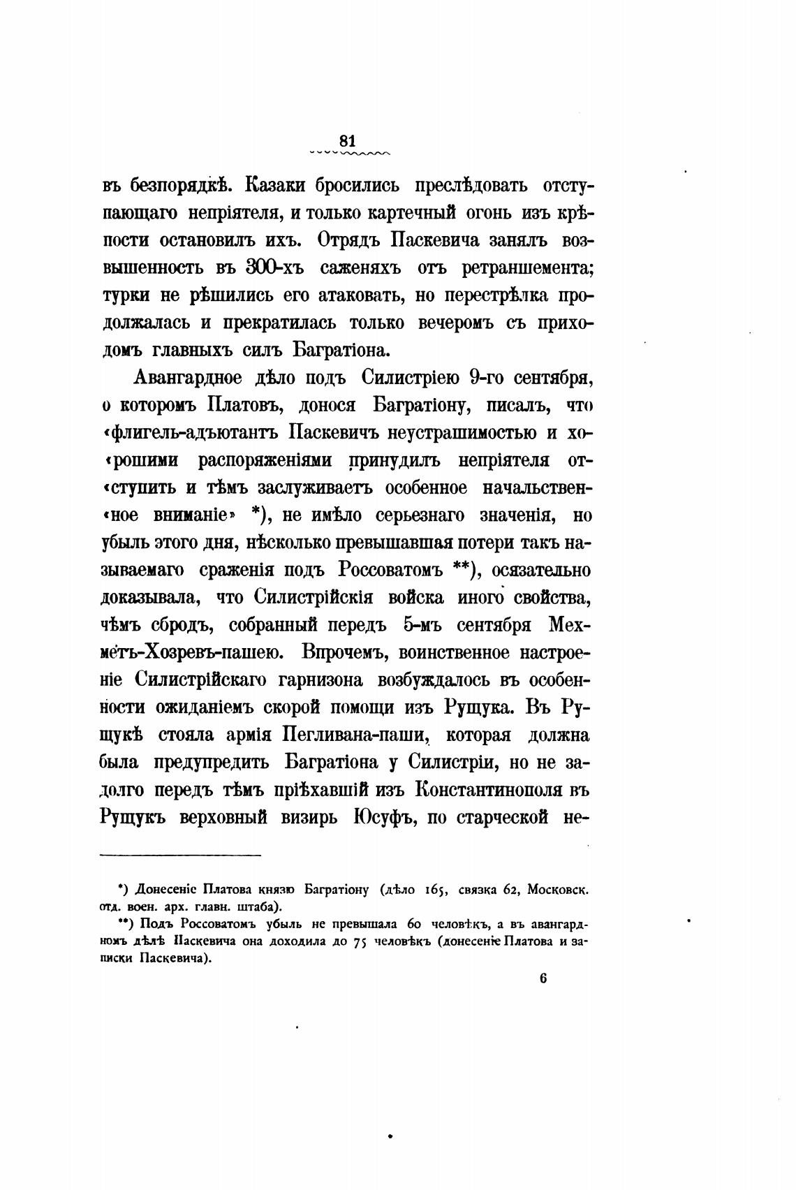 “ ) Подъ Рхсоватомъ убыль не превышала 60 челов±къ, а въ авангард-