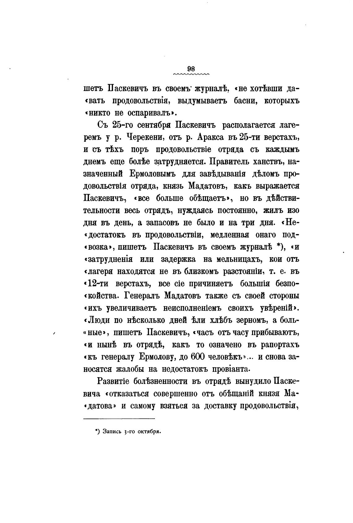 Съ 25-го сентября Паскевичъ располагается лаге-