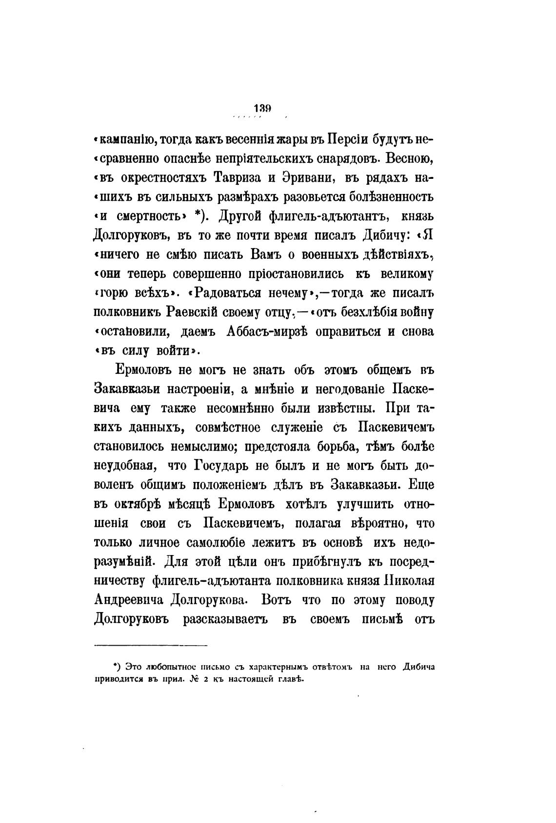 Долгоруковъ, въ то же почти время писалъ Дибичу: «Я