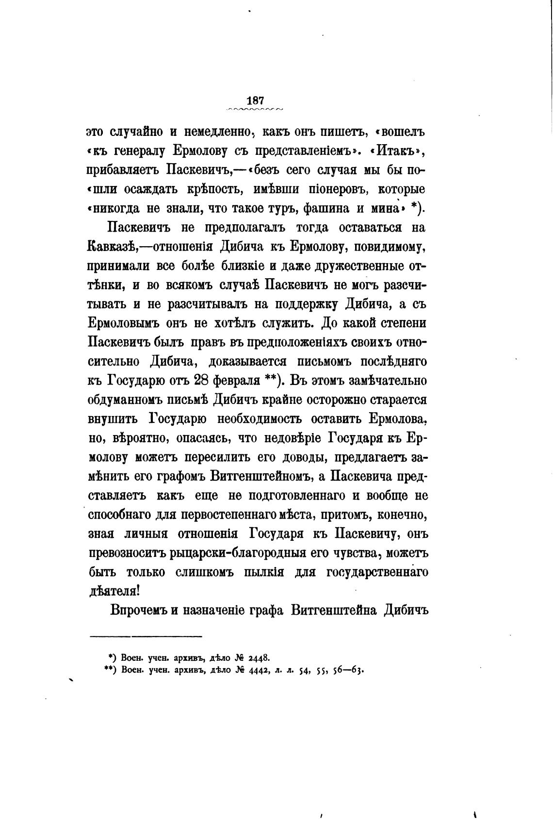 Впрочемъ и графа Витгенштейна Дибичъ