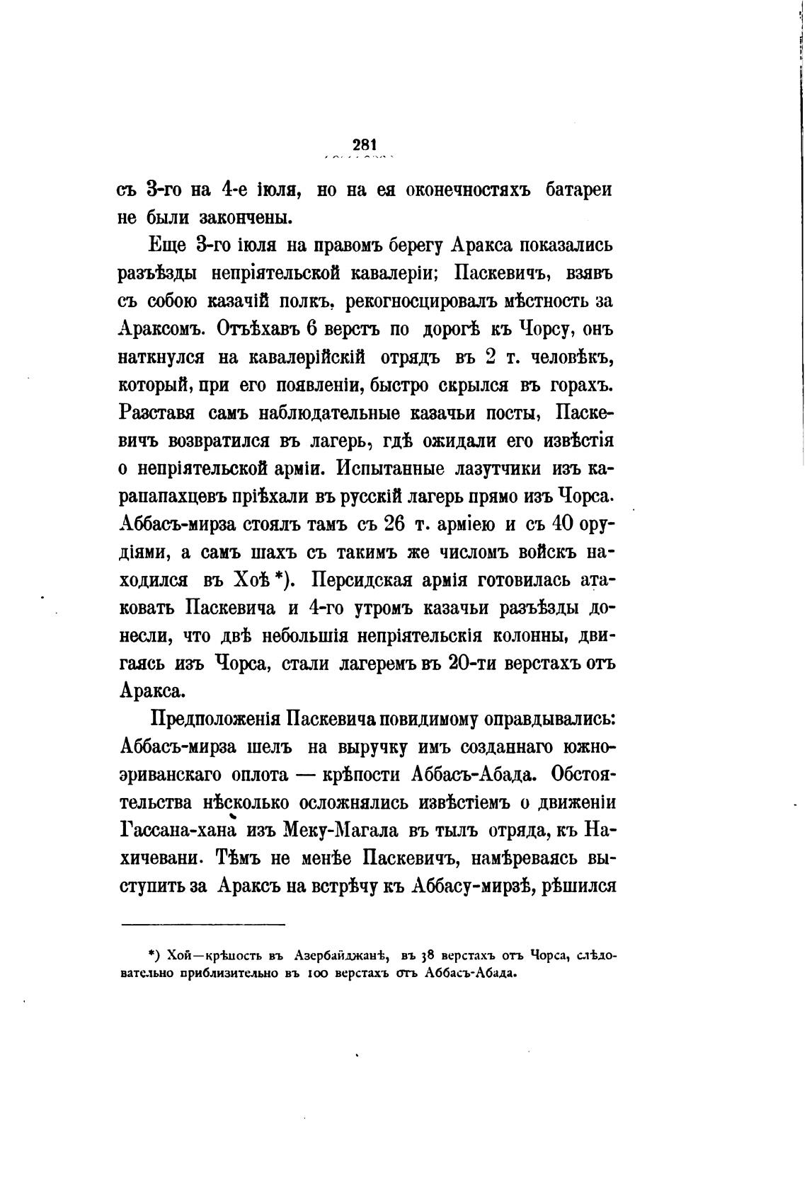ступить за Араксъ на встрВчу кь Аббасу-мирзв, рВшился
