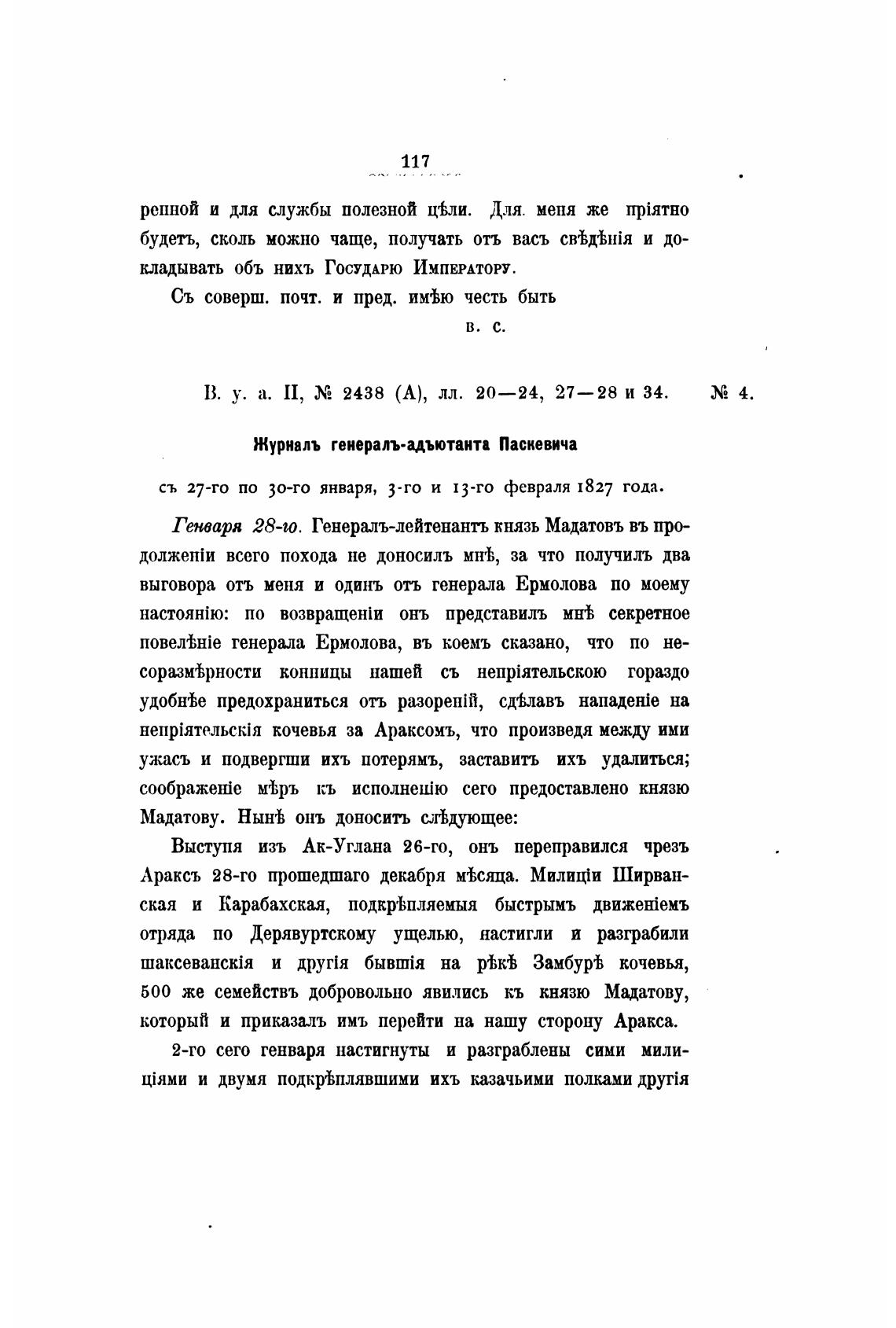 Генваря 28-0. Генералъ-лейтенанть князь Мадатовъ въ про-
