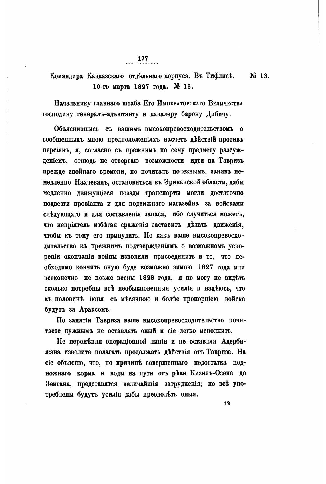 господину генералъ-адъютанту и кавалеру барону Дибичу.