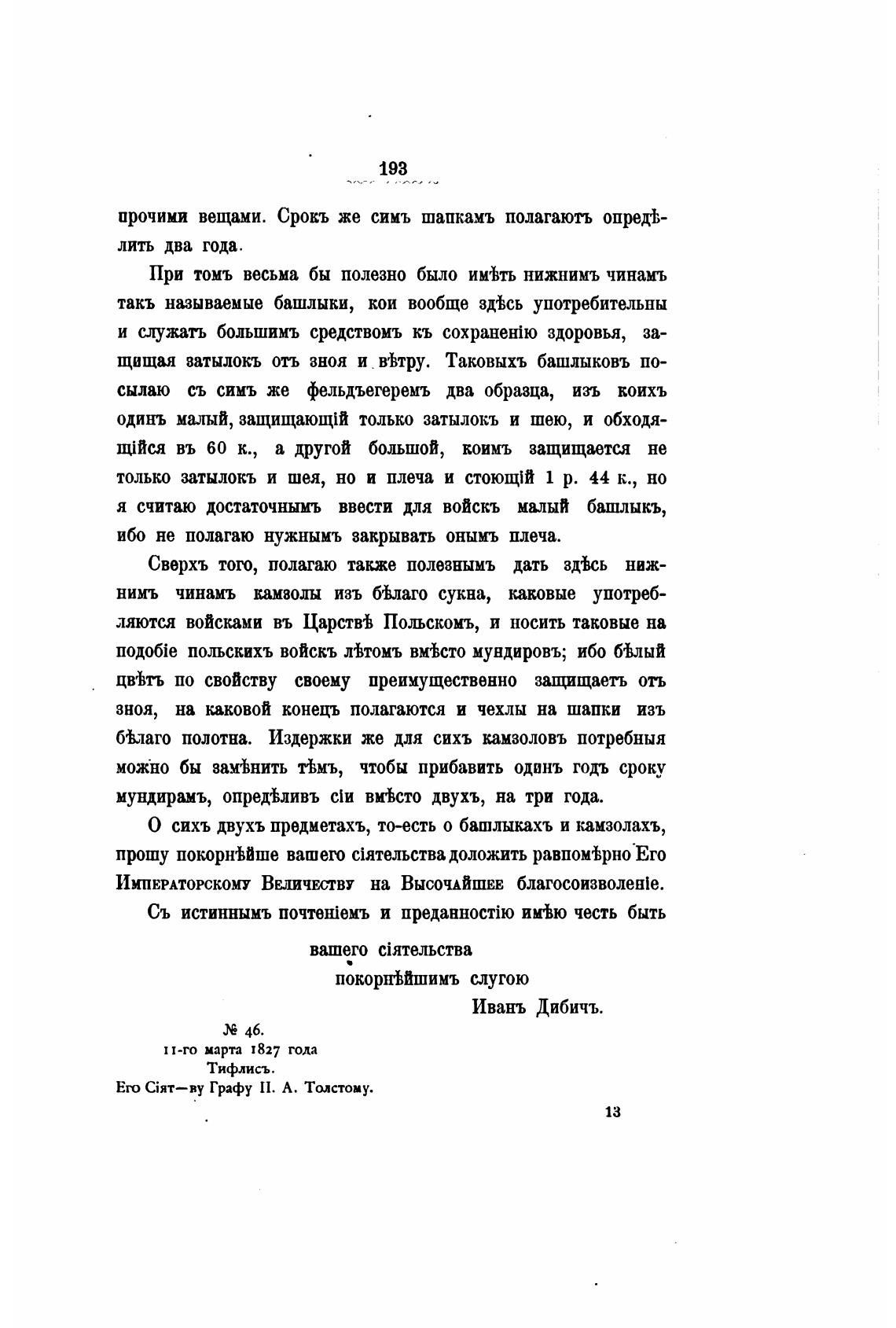 О сихъ двухъ предметахъ, то-есть о башлыкахъ и камзолахъ,
