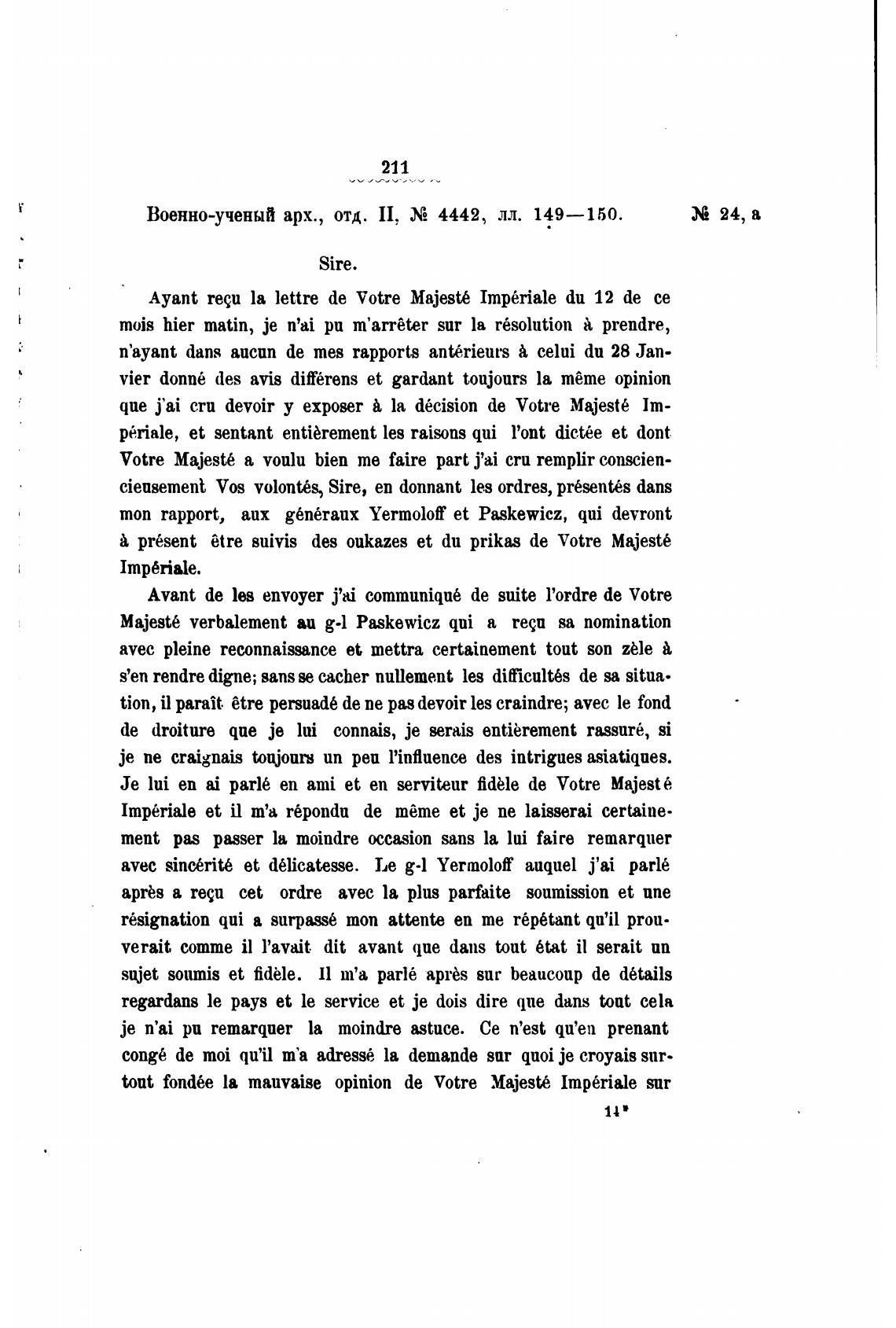 топ rapport, аих g6n6raux Yermolof et Paskewicz, qui devront