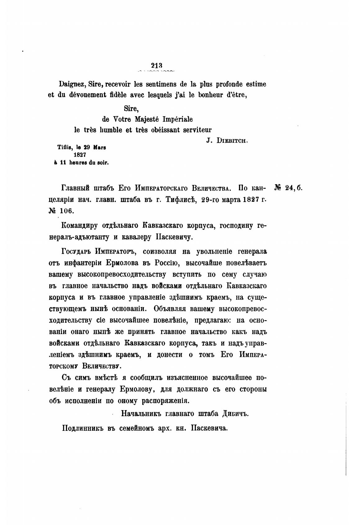 Начальникъ главнаго штаба ДИБИЧЪ.