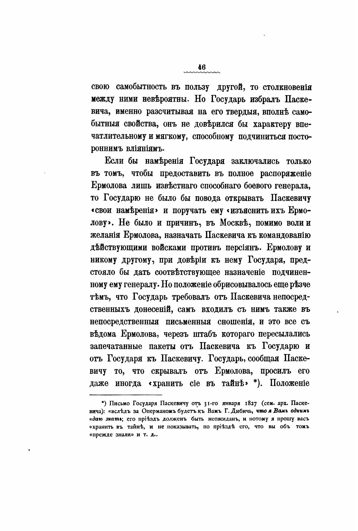 • ) Письмо Государя Паскевичу отъ 31-го января 1827 (сем. арх. Паске-