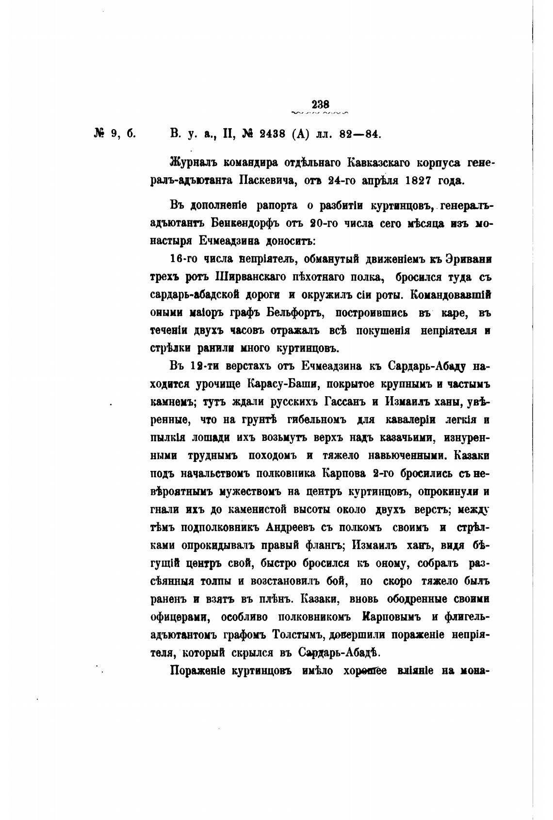 ралъ-адъотанта Паскевича, отв 24-го апр•ьля 1827 года.