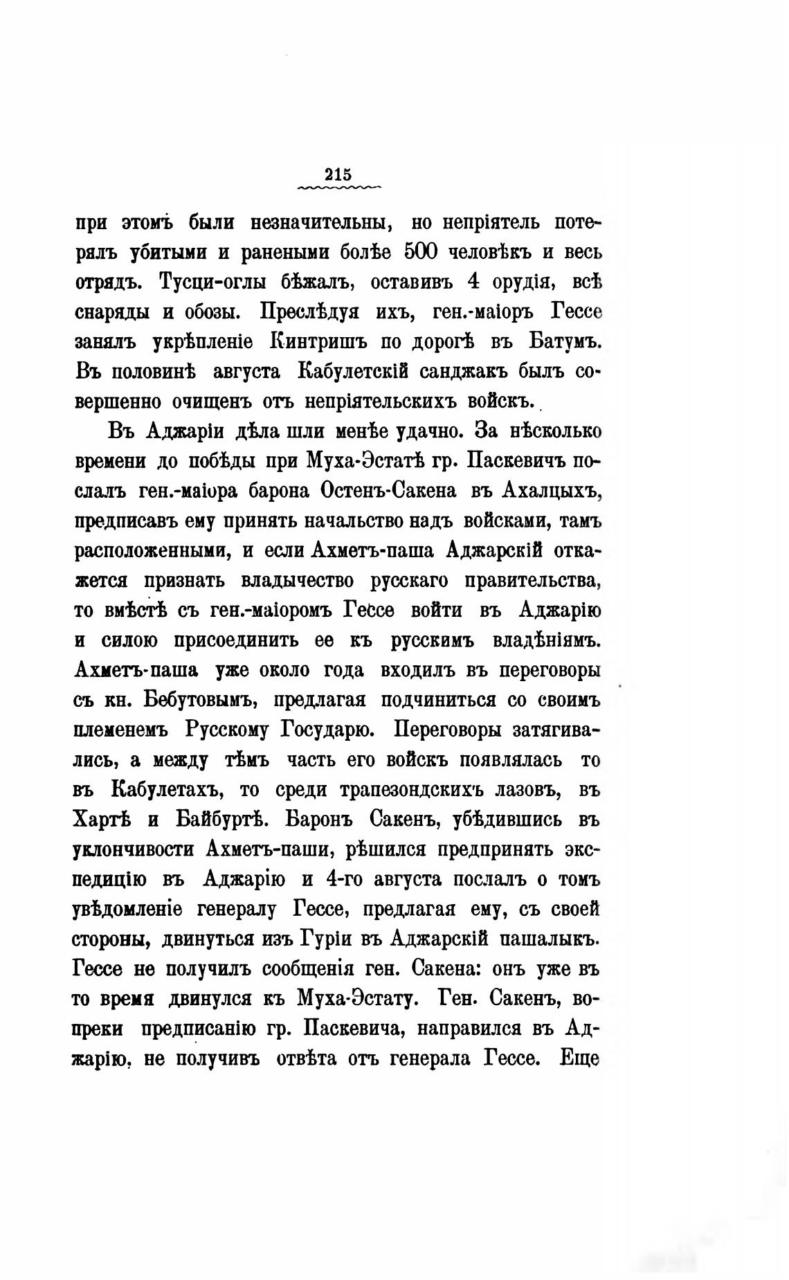 сдалъ барона Остенъ-Сакена въ Ахалцыхъ,