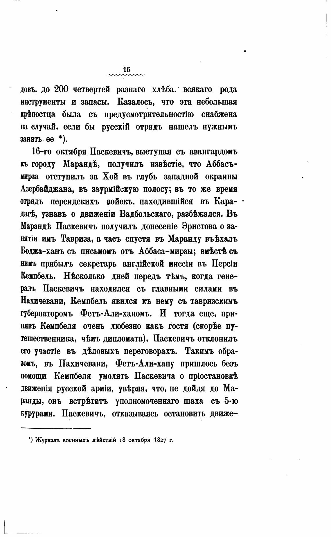 16-го октября Паскевичъ, выступая съ авангардомъ
