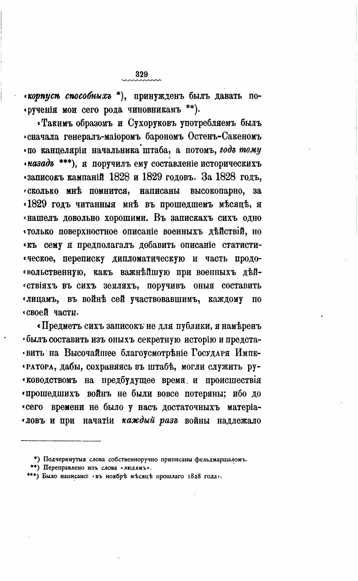 * ) Подчеркнутыя слова собственноручно приписаны фельдмаршаломъ.