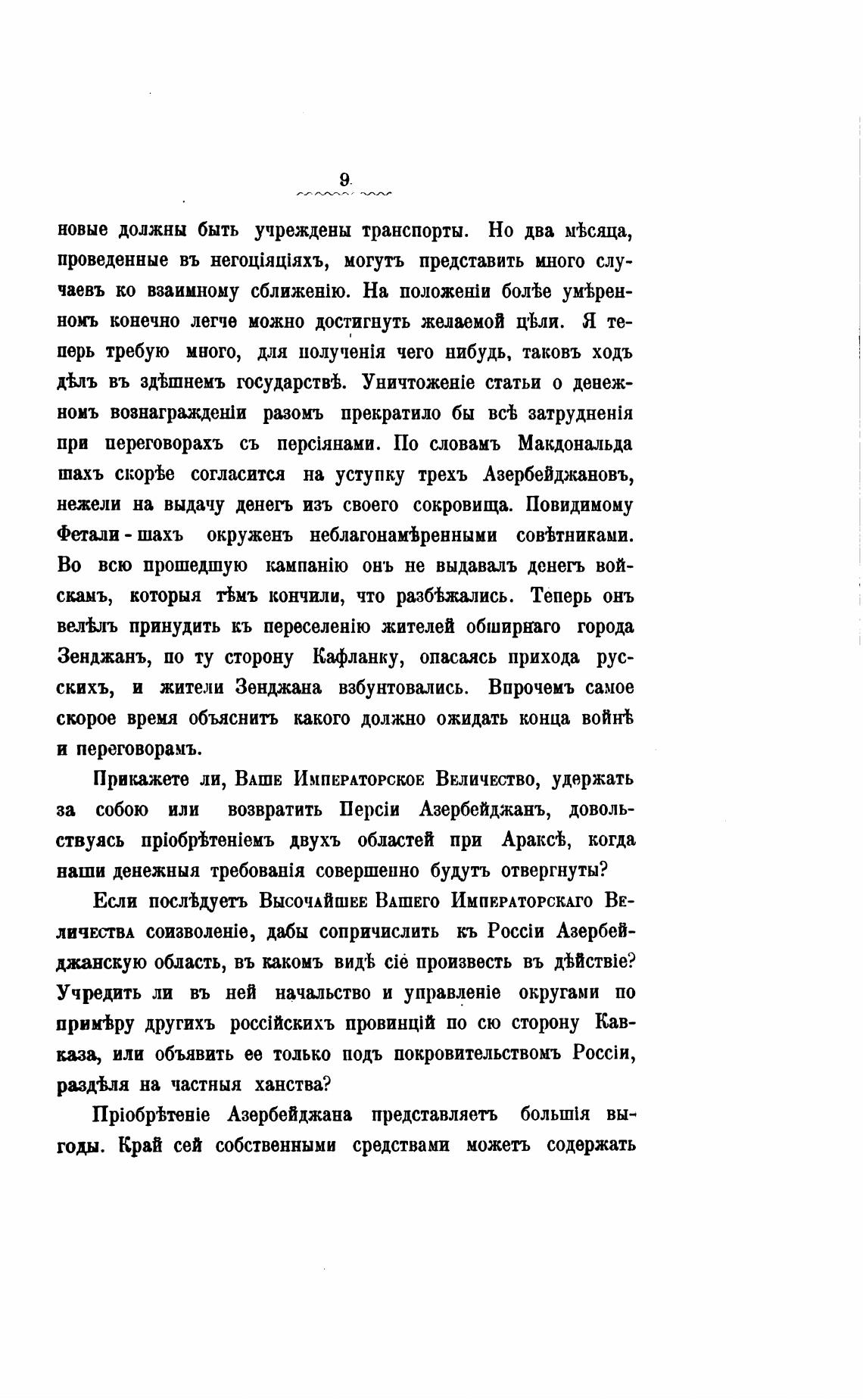 за собою или возвратить Азербейджанъ, доволь-