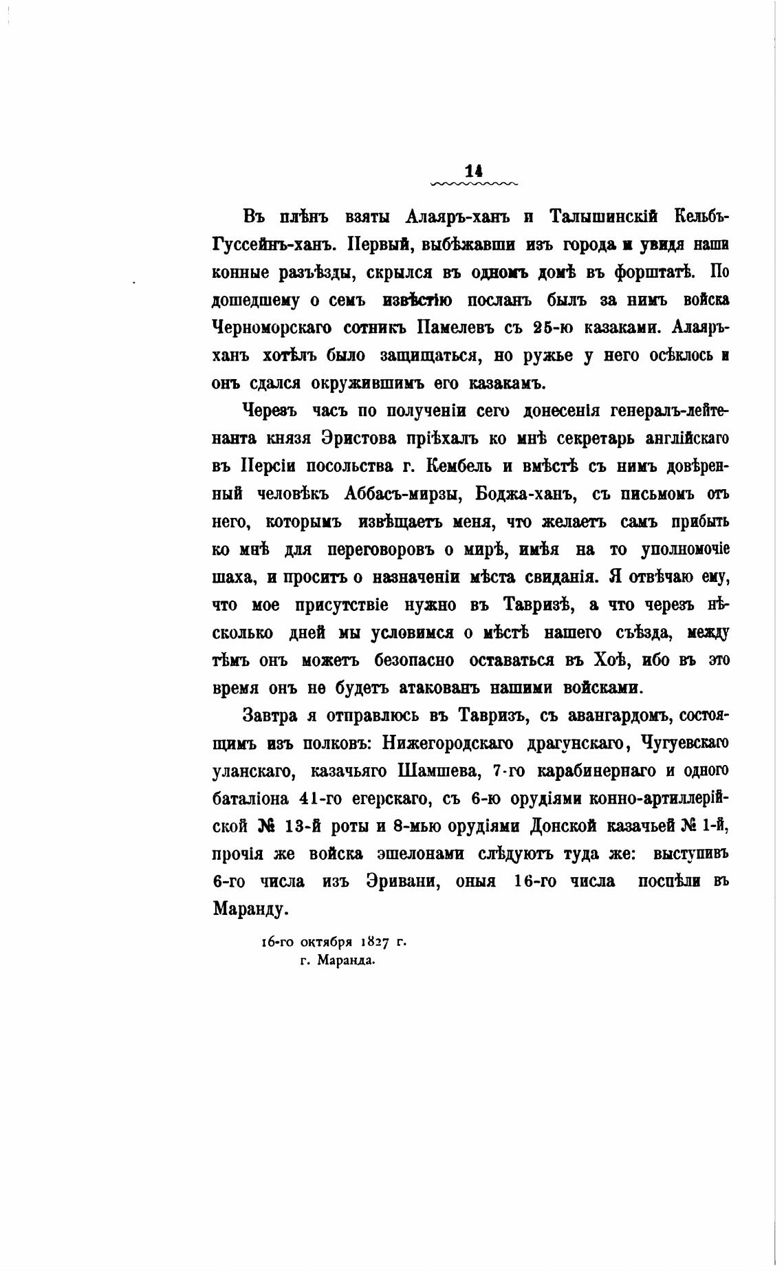 Завтра я отправлкюь въ Тавризъ, съ авангардомљ, состоя-