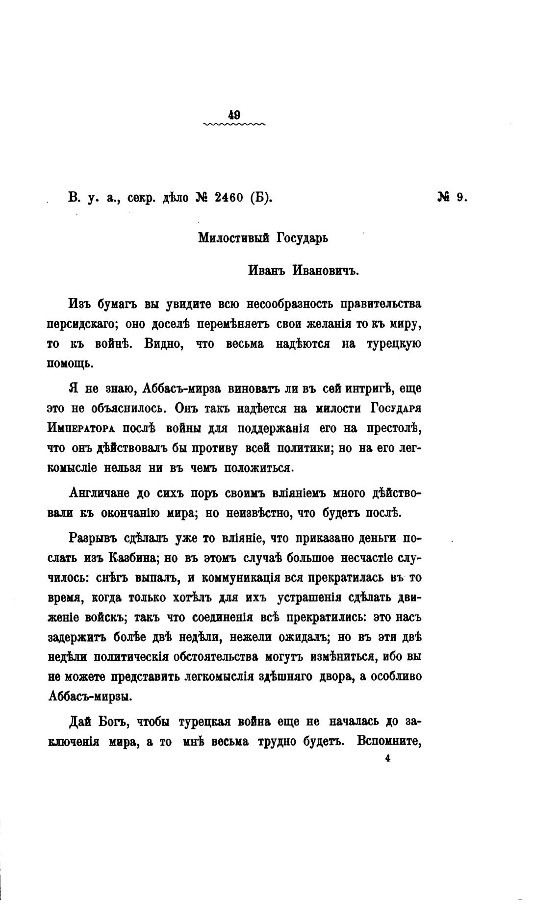 Я не знаю, Аббасъ-мирза виновать ли въ сей интригЬ, еще