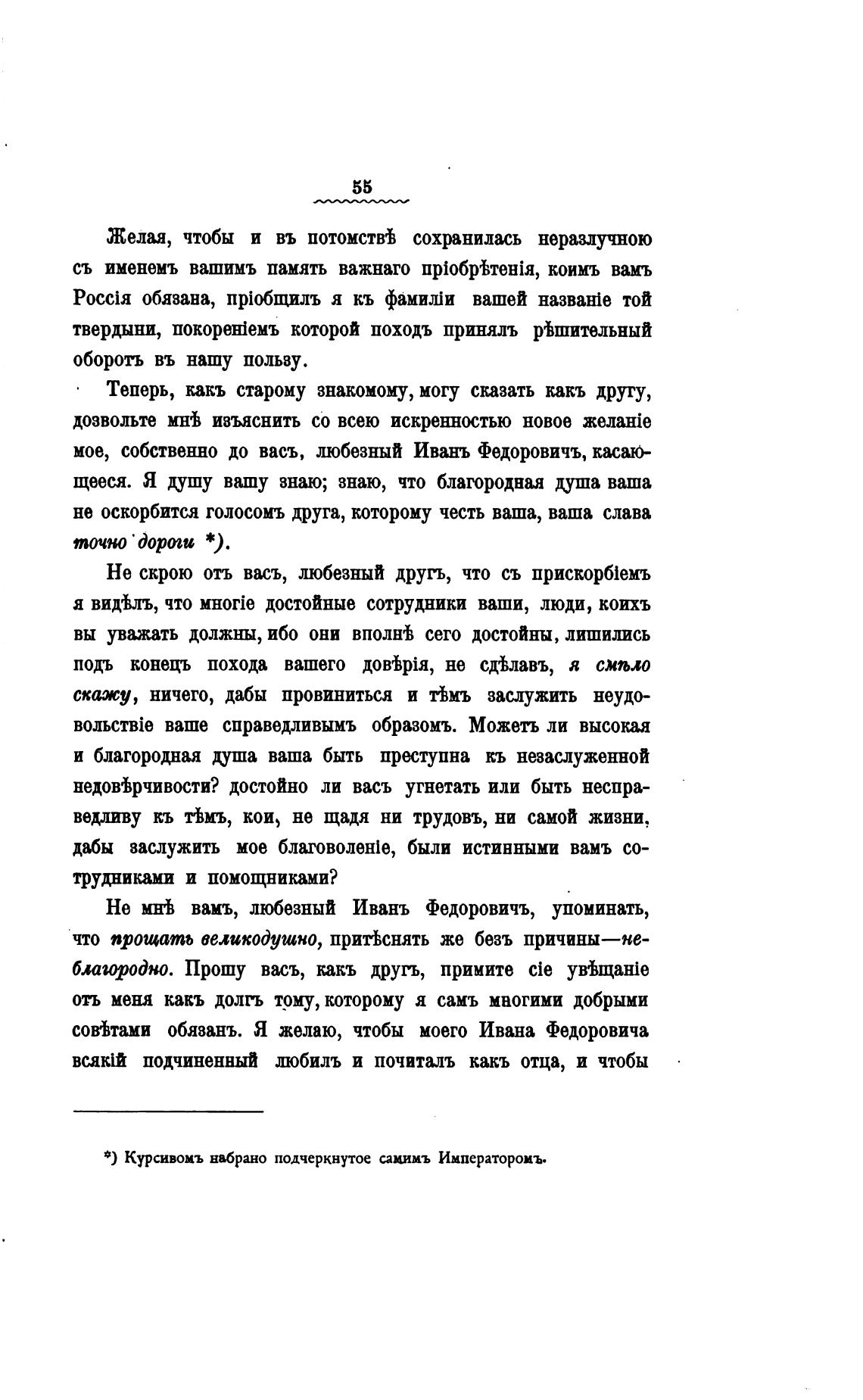 4) Курсивомъ набрано подчеркнутое сацимъ Императоромъ.