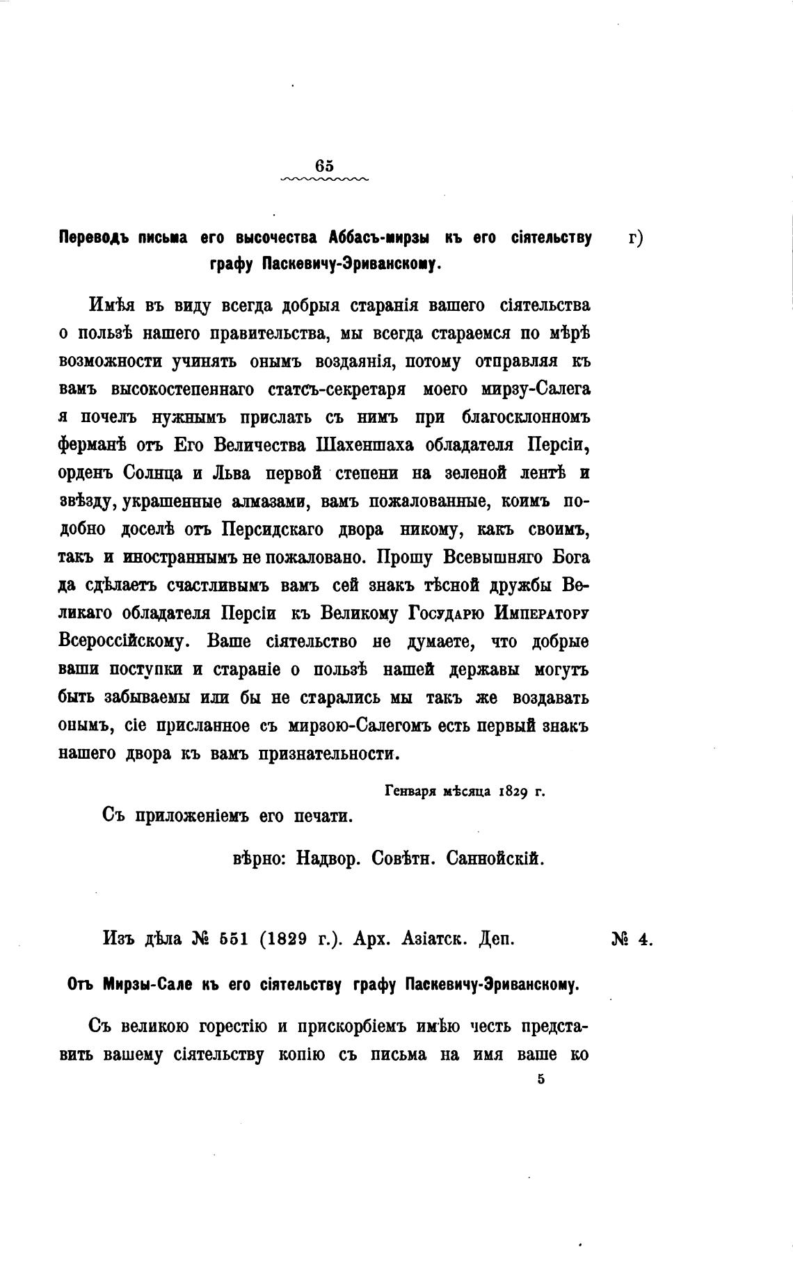 Изъ д•Ьла 551 (1829 г.). Арх. A3iaTck. Деп.