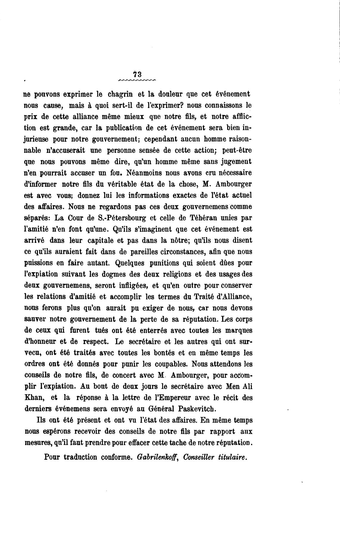 Pour traduction conforme. Gabrilenkof, Conseiller titulaire.