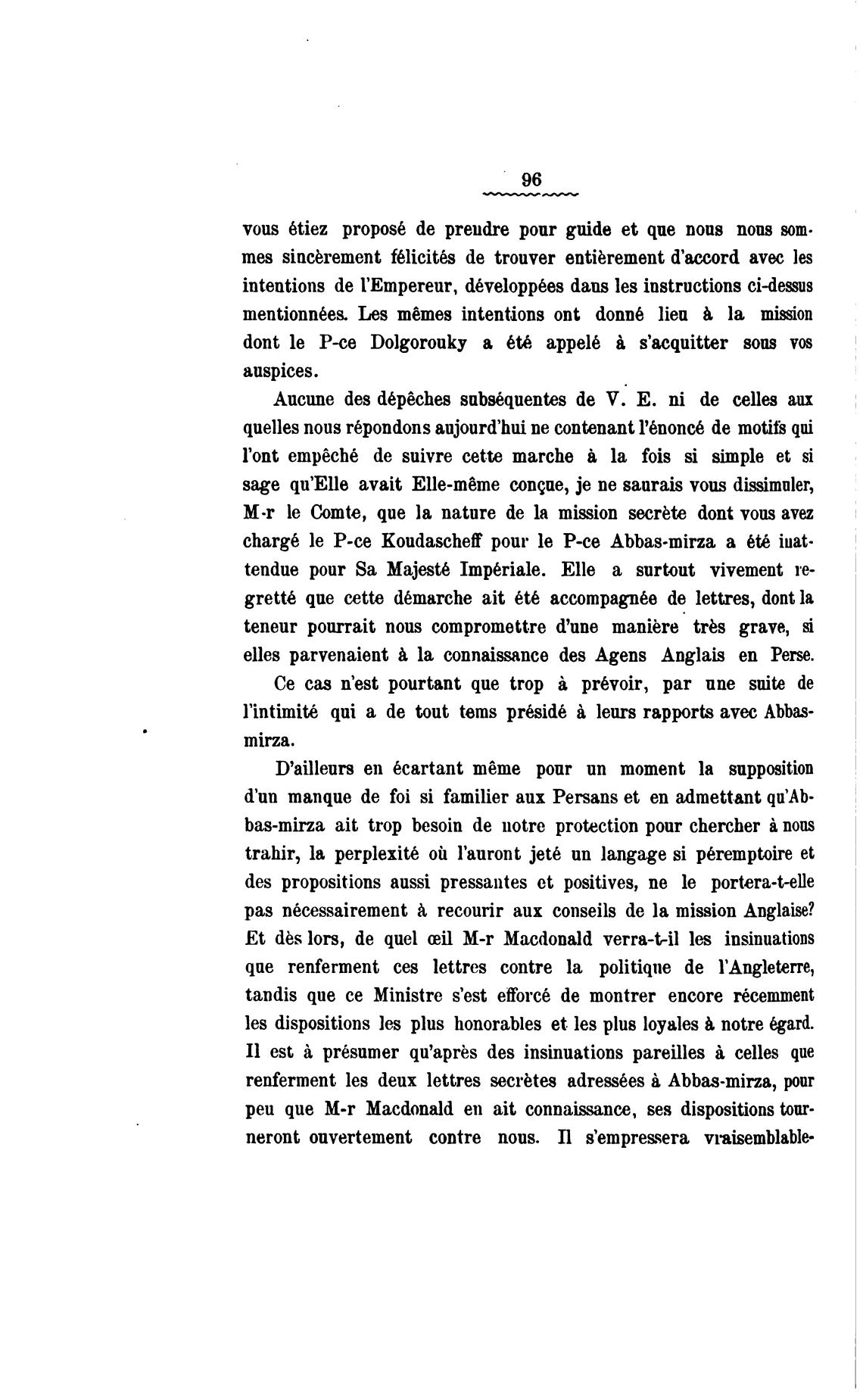 renferment les deux lettres secrbtes adressbes Abbas-mirza, pur