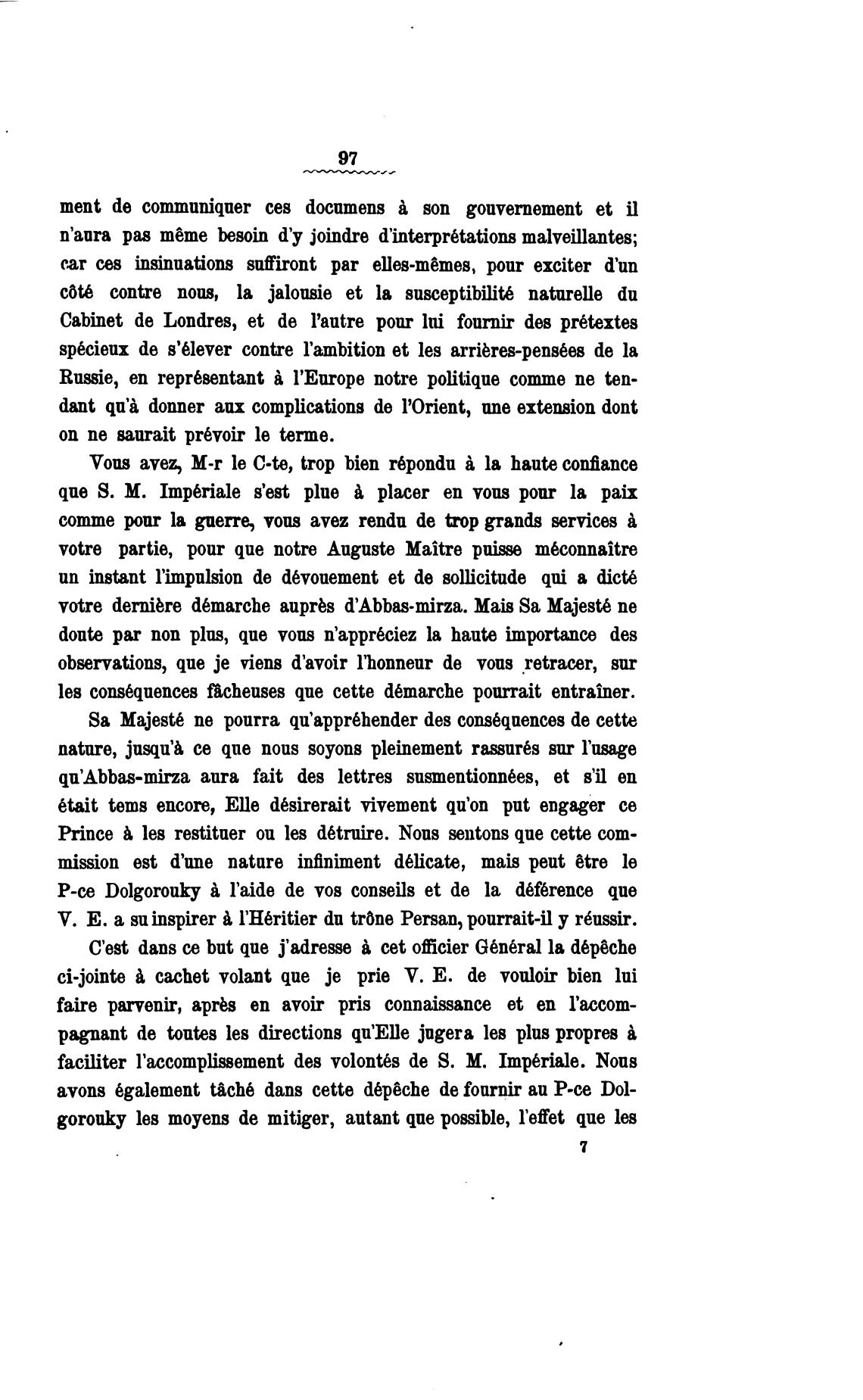 votre dernibre d6marche auprbs d'Abbas-mirza. Mais Sa Majest6 пе