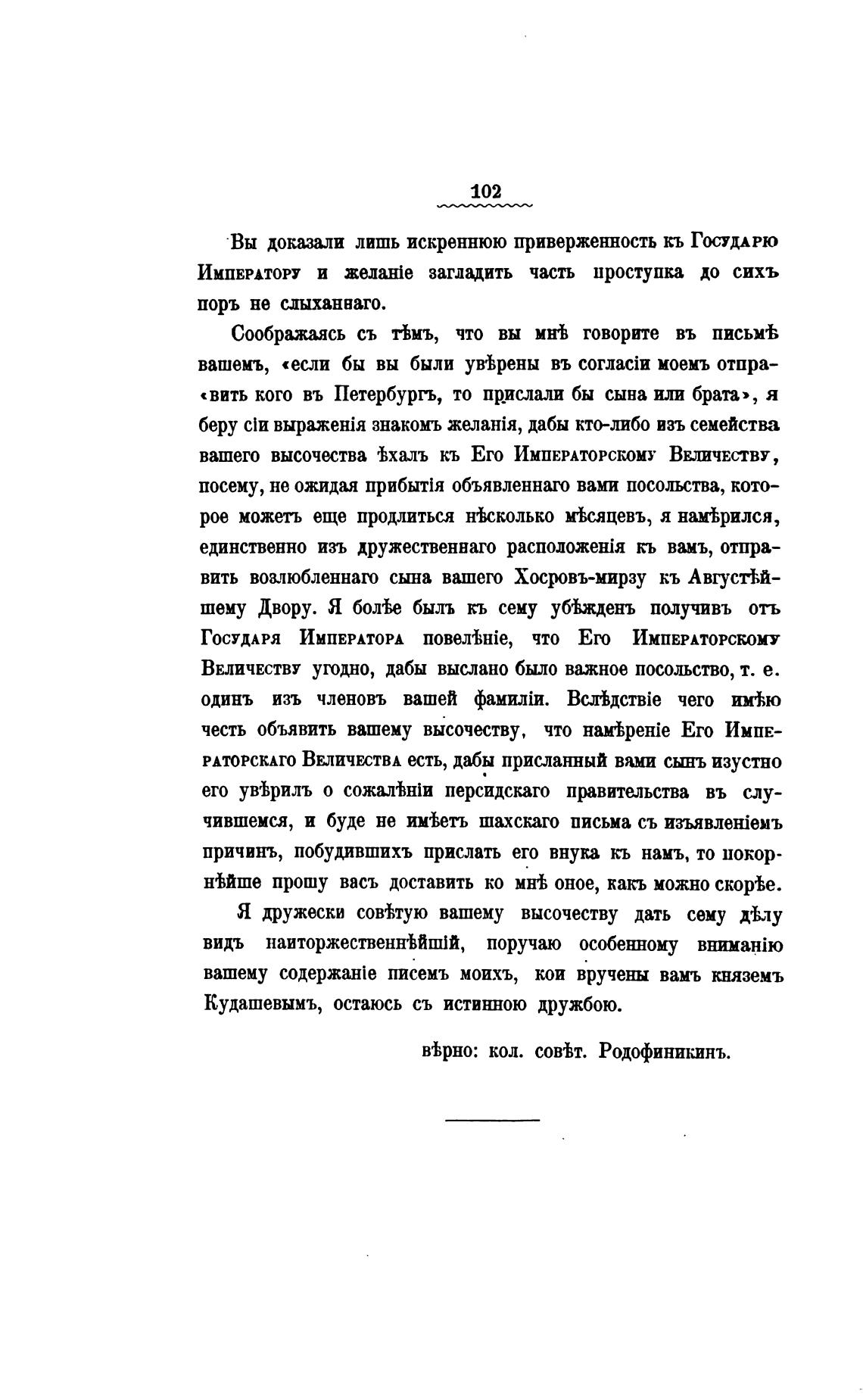 единственно изъ дружественнаго расподоженјя кь вамъ, отпра-