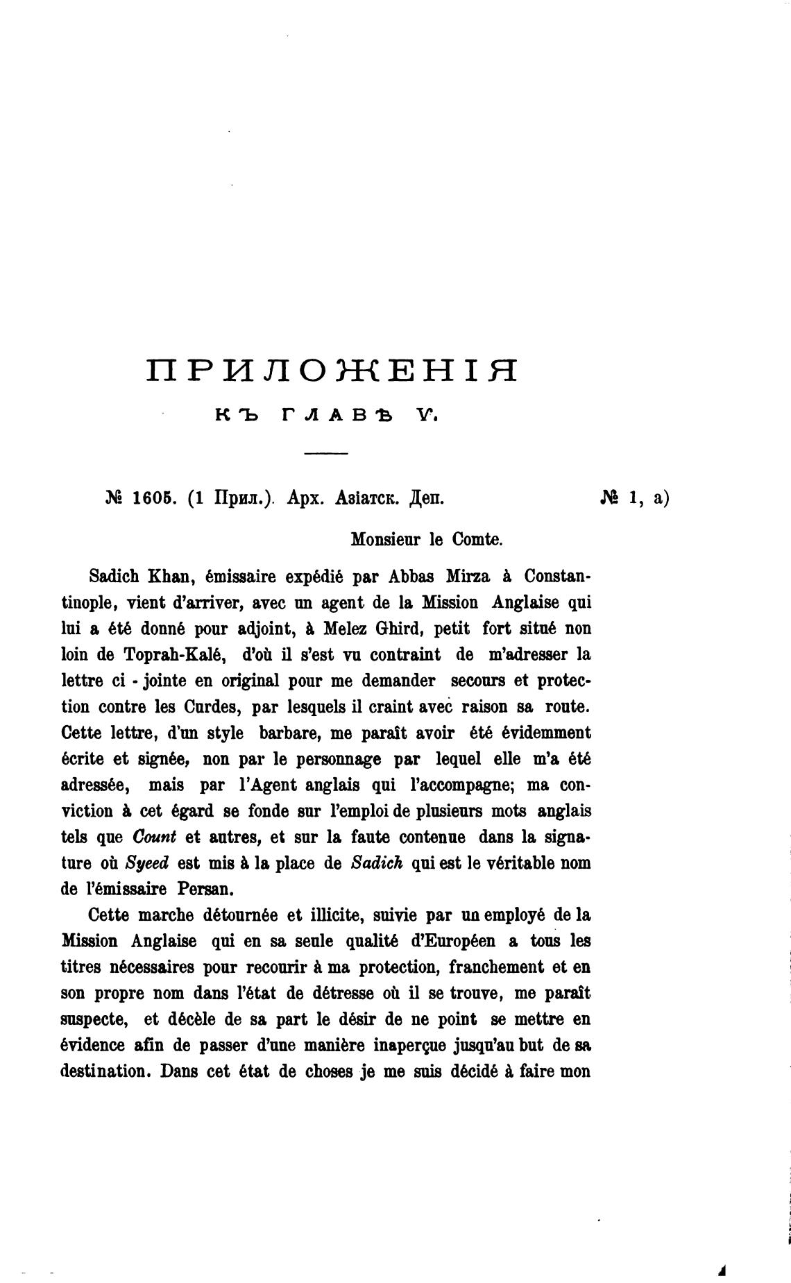Sadich khan, 6missaire exp6dib par Abbas Mirza Constan-