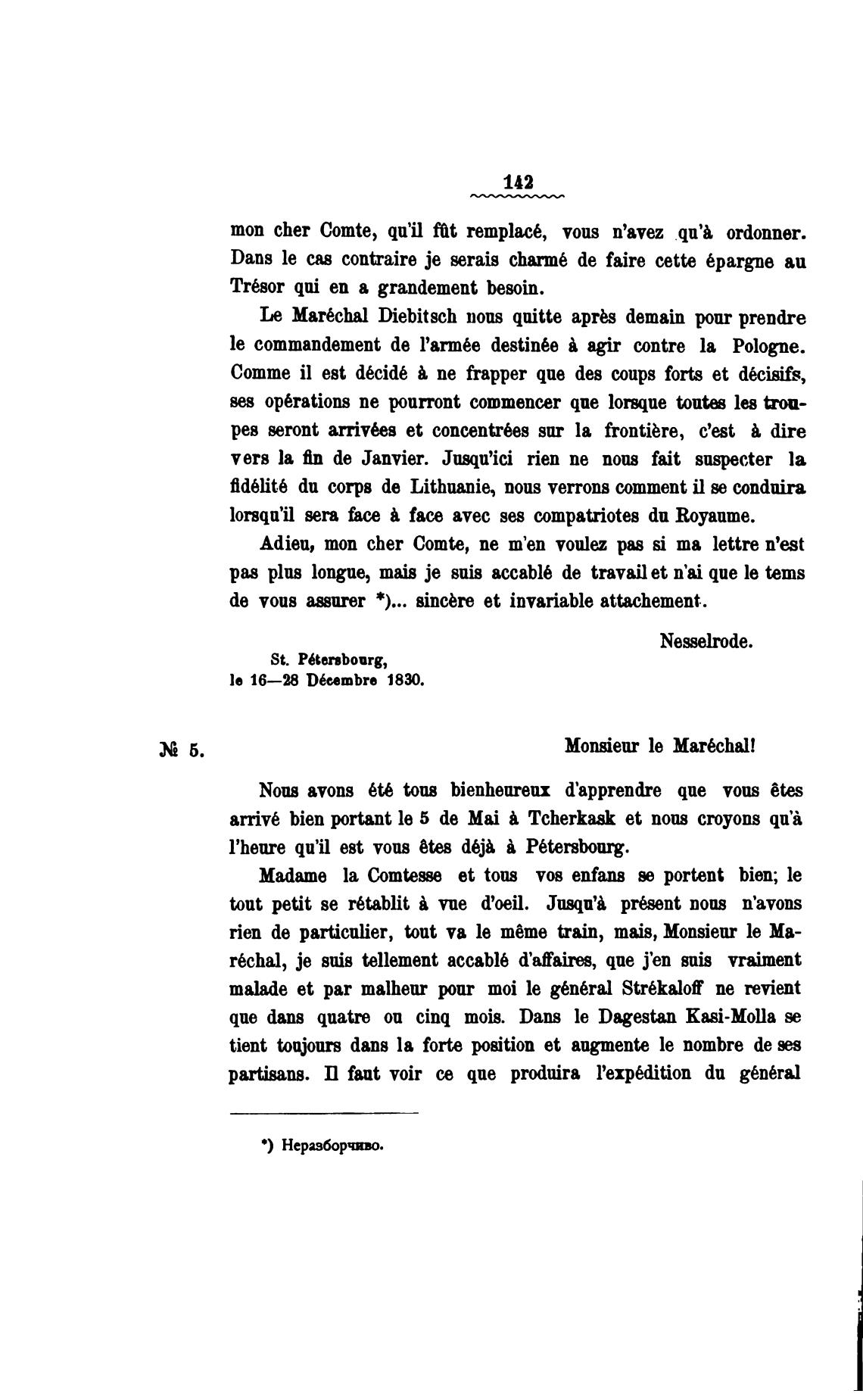 Le Mar6chal Diebitsch nous qaitte aprbs demain pur prendre