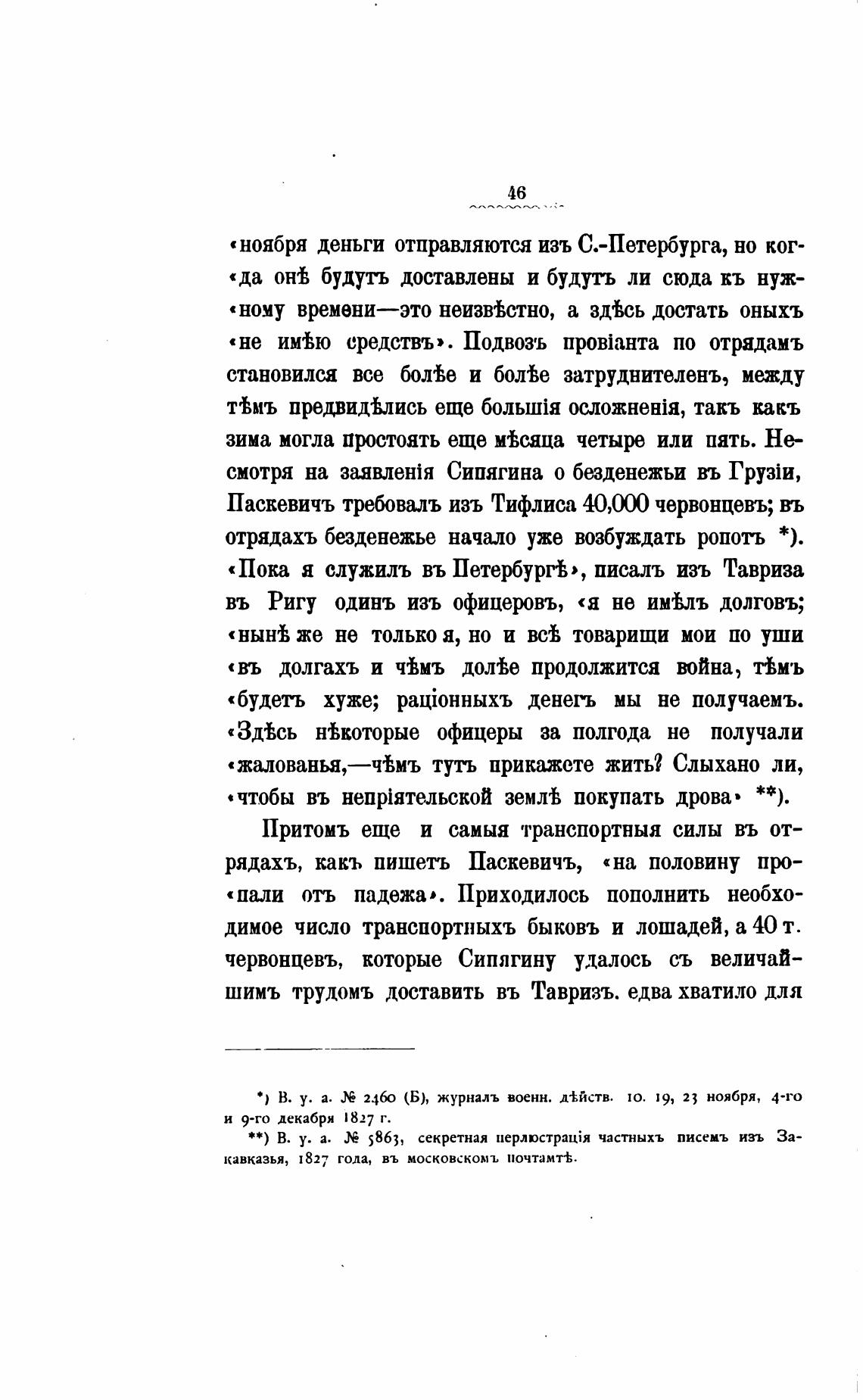 Паскевичъ требовалъ изъ Тифлиса 40,0 червонцевъ; вь