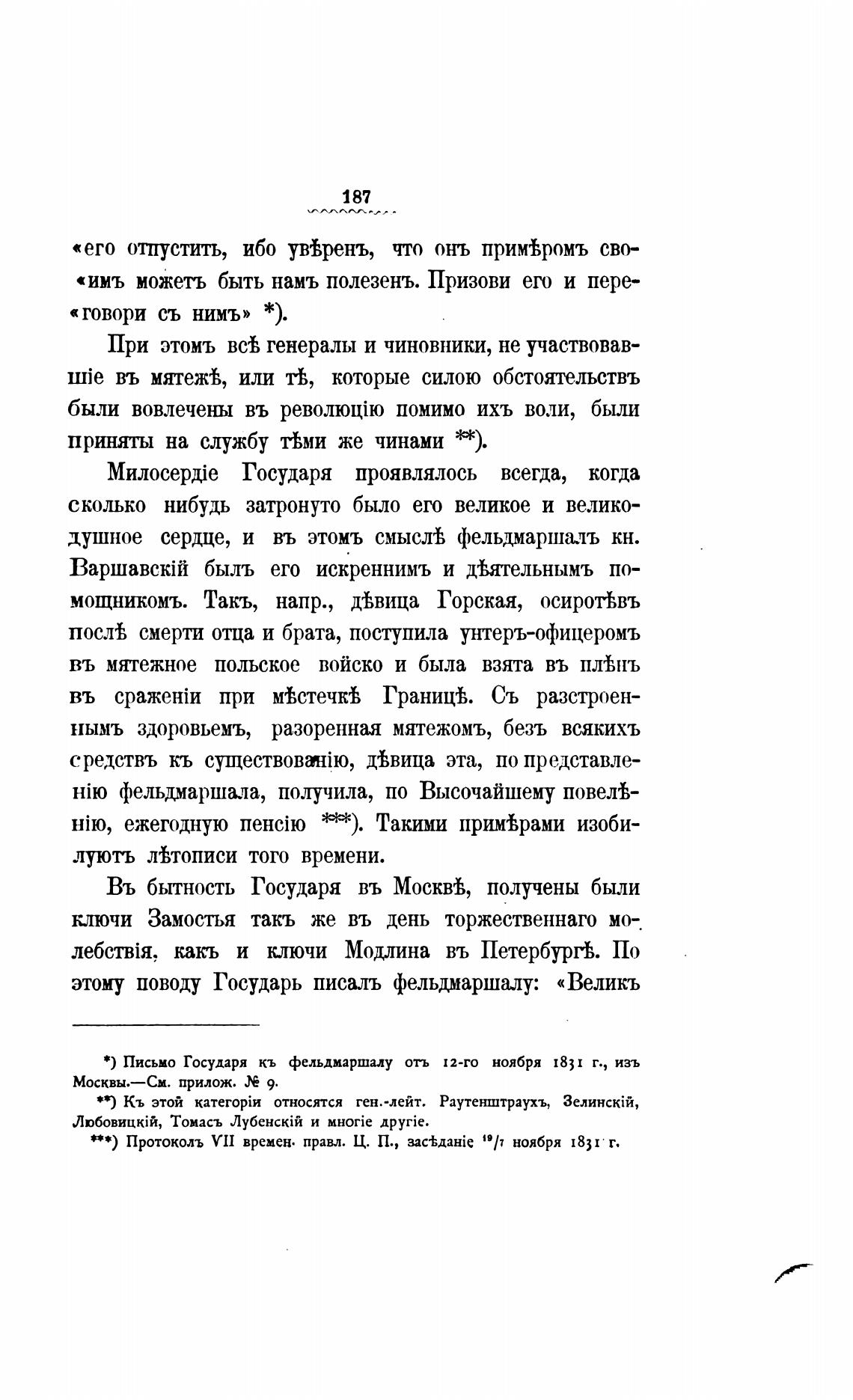 *) Письмо Государя кь фельдмаршалу отъ 12-го ноября 183 1 г., изъ