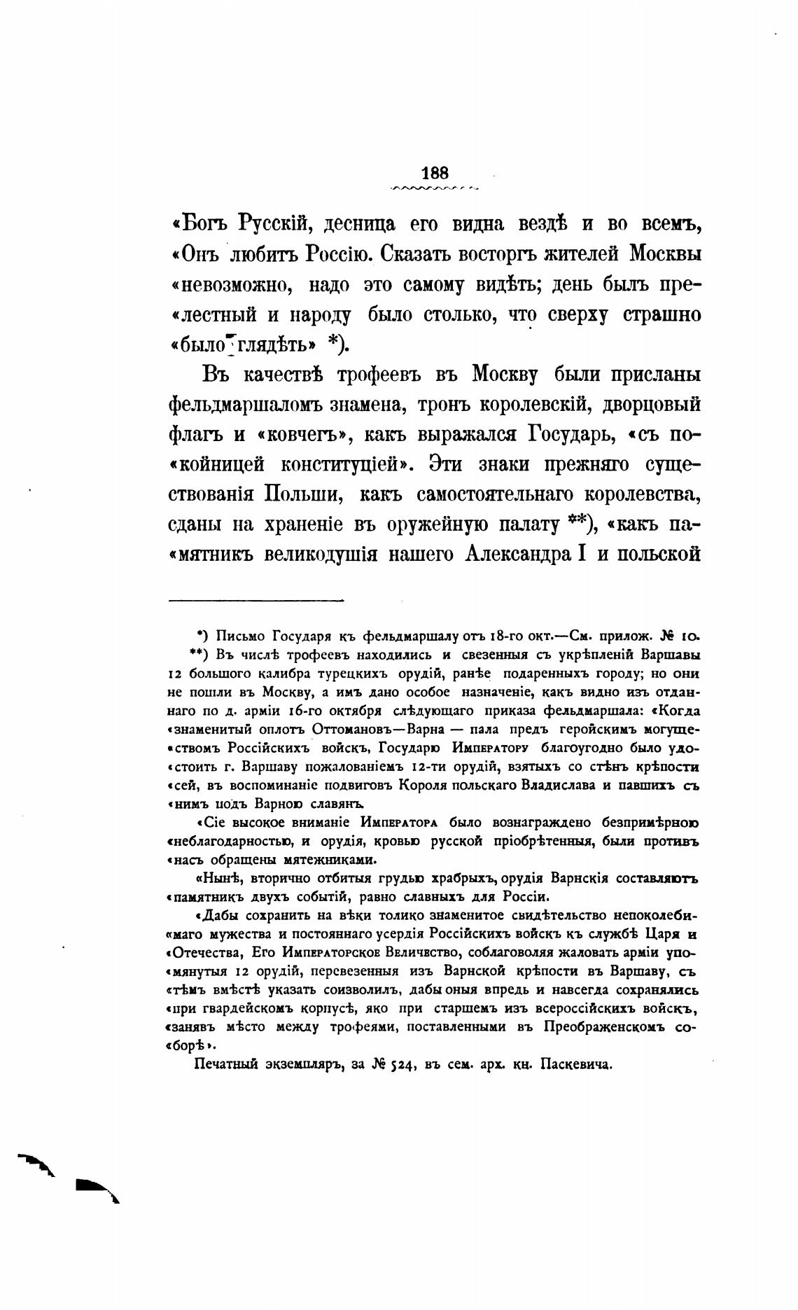 Печатный экземпляръ, за 524, въ сем. арх. кн. Паскевича.