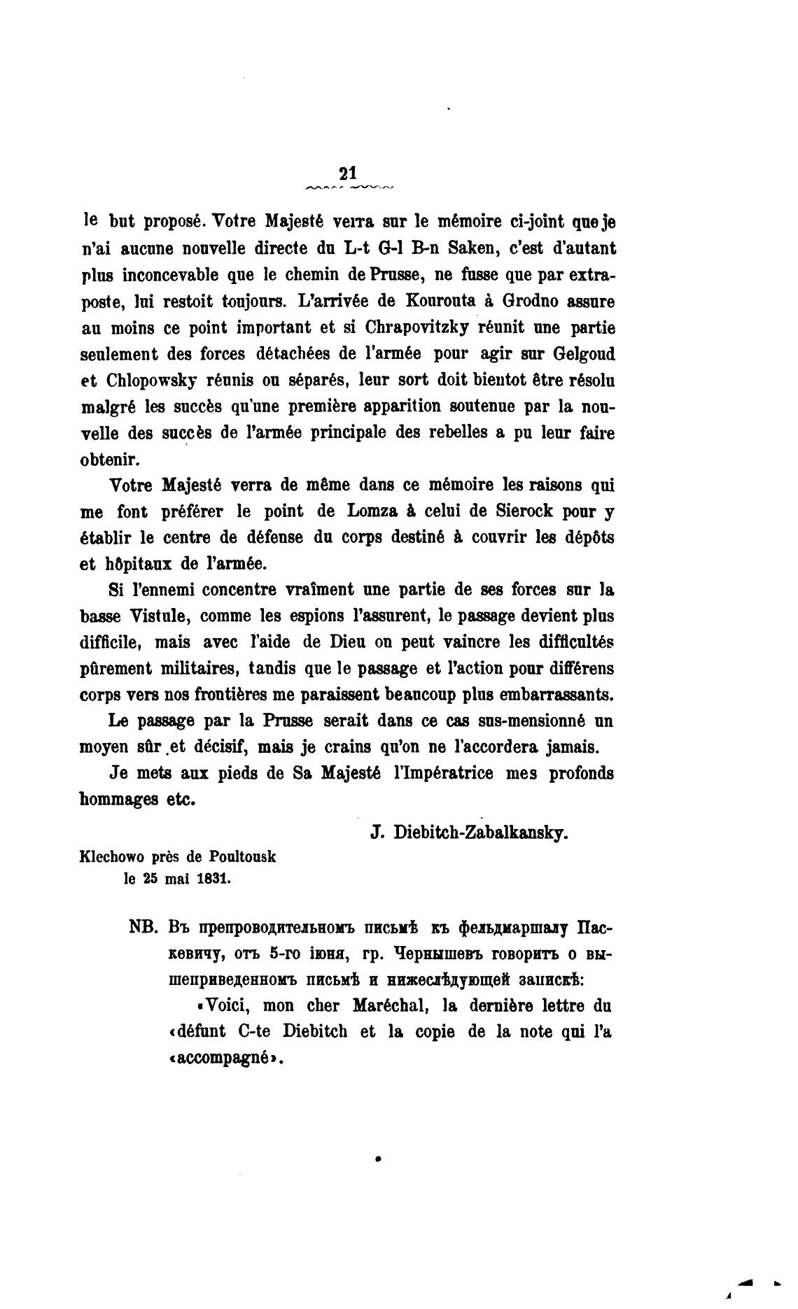 NB. Въ препроводительномъ письм± ль фельдмаршалу Пас-