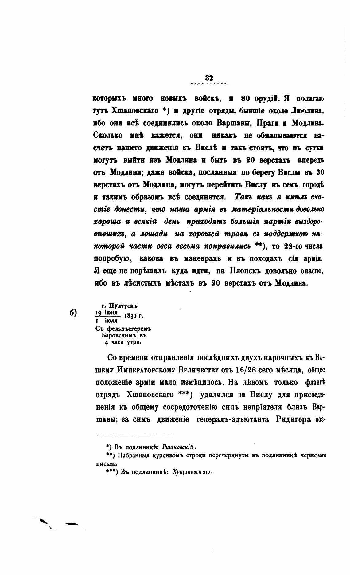 %отрядъ Хшановскаго ***) удалился за Вислу для присоеди-