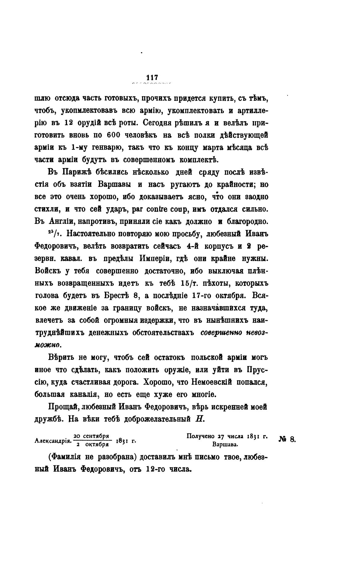 Федоровичъ, велђть возвратить сейчасъ 4-й корпусъ и Я ре-
