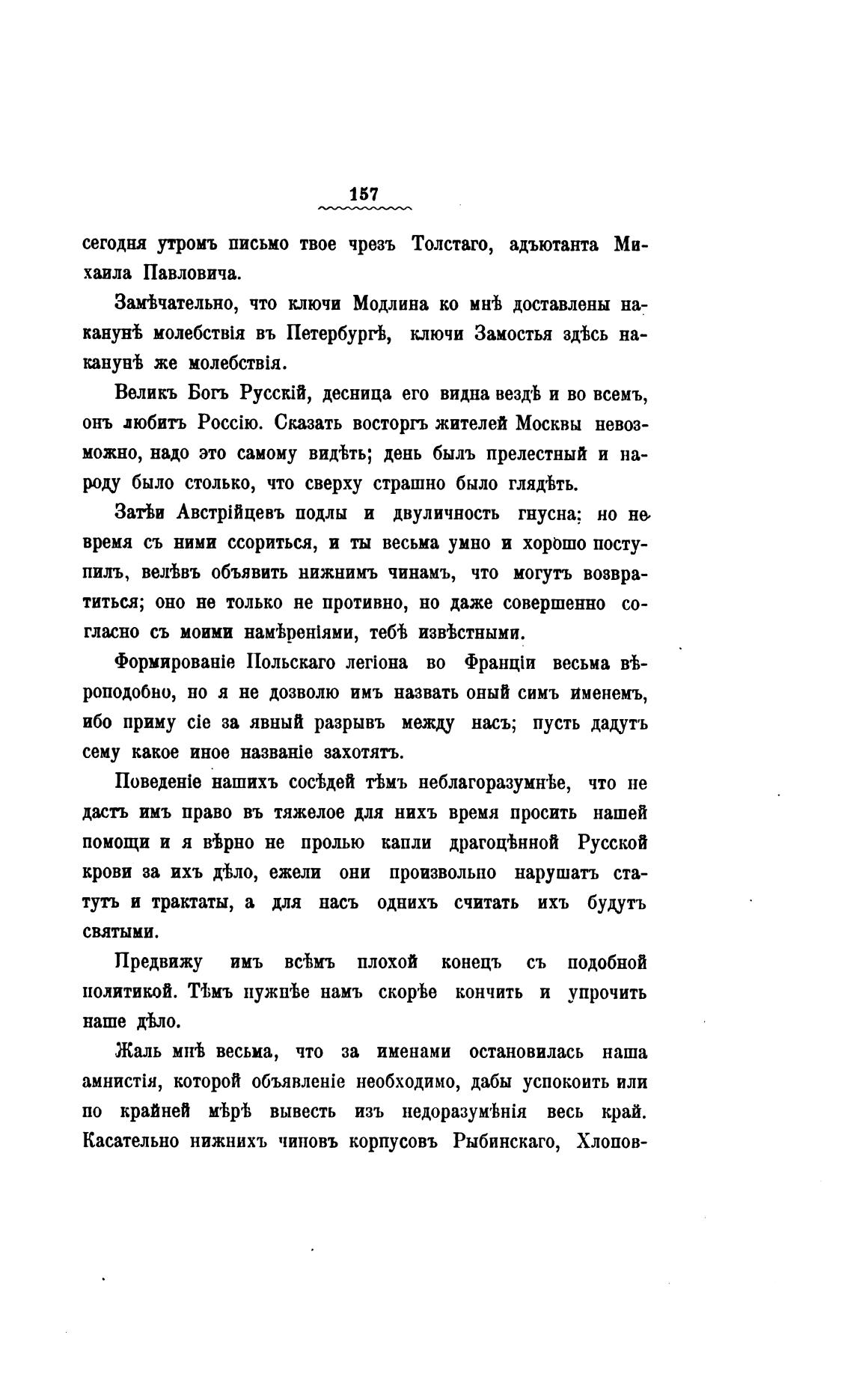 сегодня утроиъ письмо твое чрезъ Толстаго, адъютанта Ми-