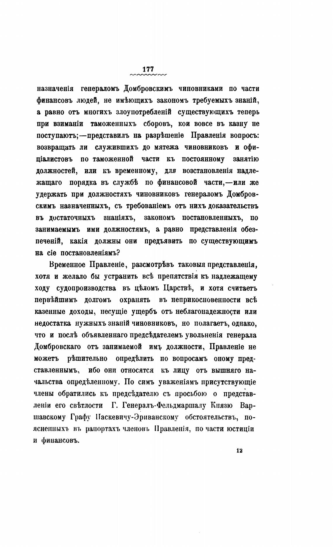удержать при должностяхъ чиновниковъ генераломъ Домбров-