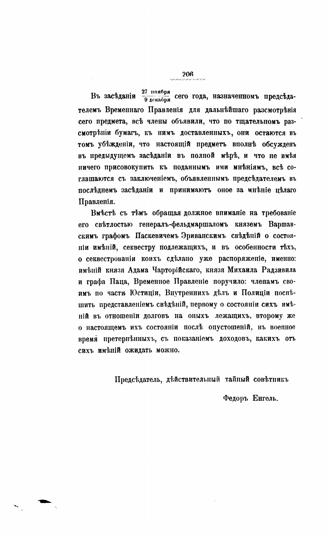 и графа Паца, Временное поручило: членамъ сво-