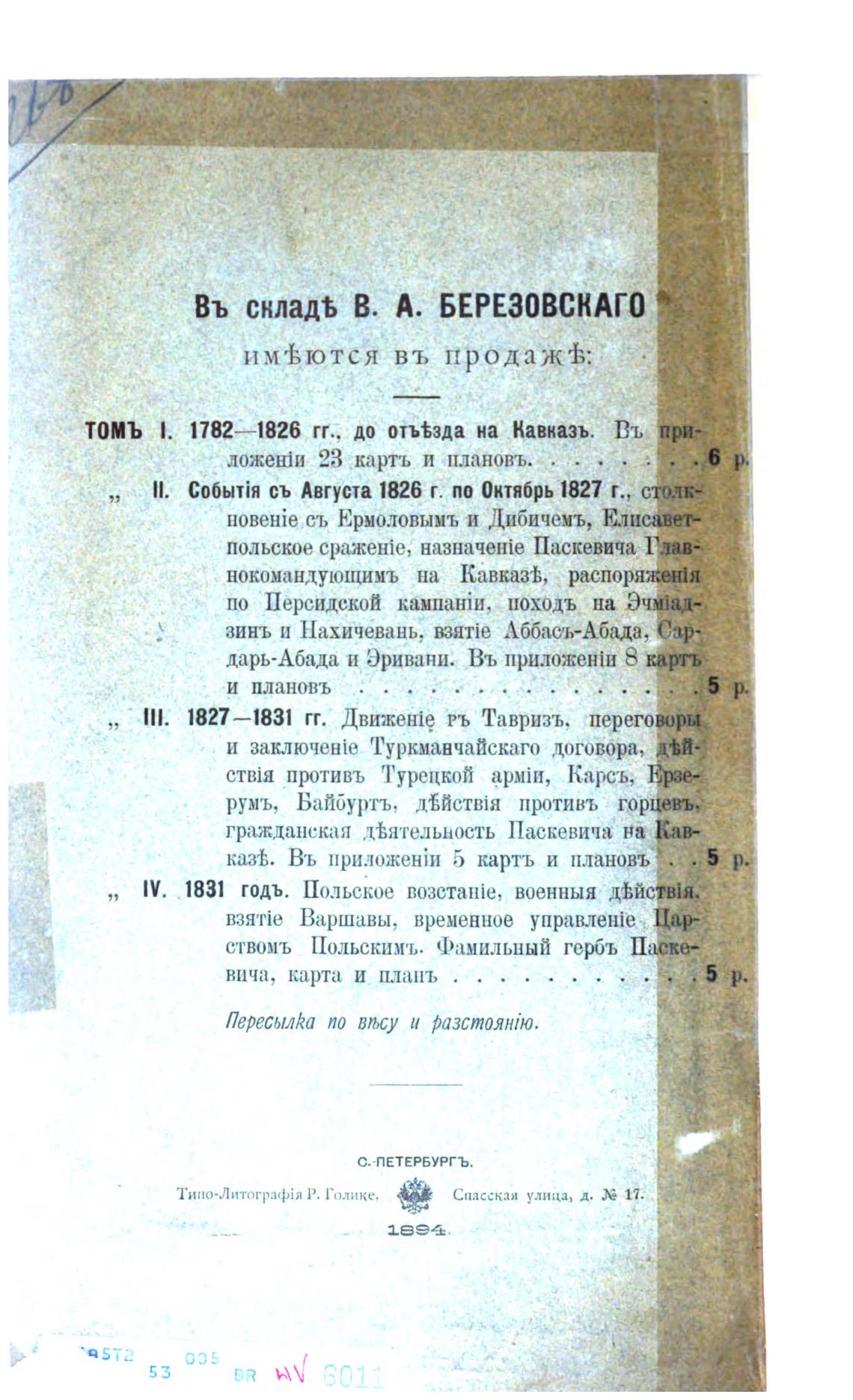 въ складь В. А. БЕРЕЗОВСКАГО
