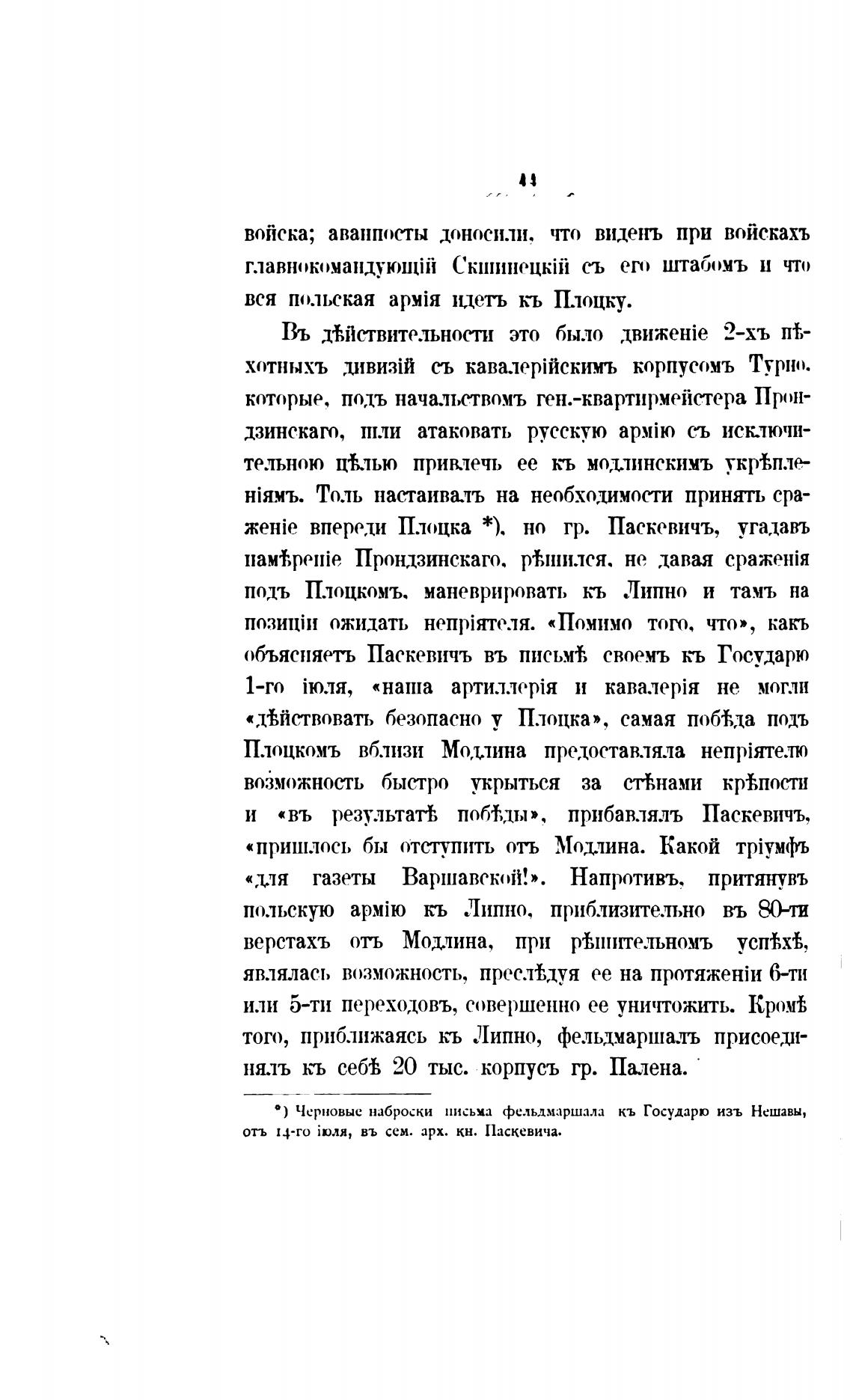 • ) Черновые наброски письма фельдмаршала кь Государю изъ Нешавы,