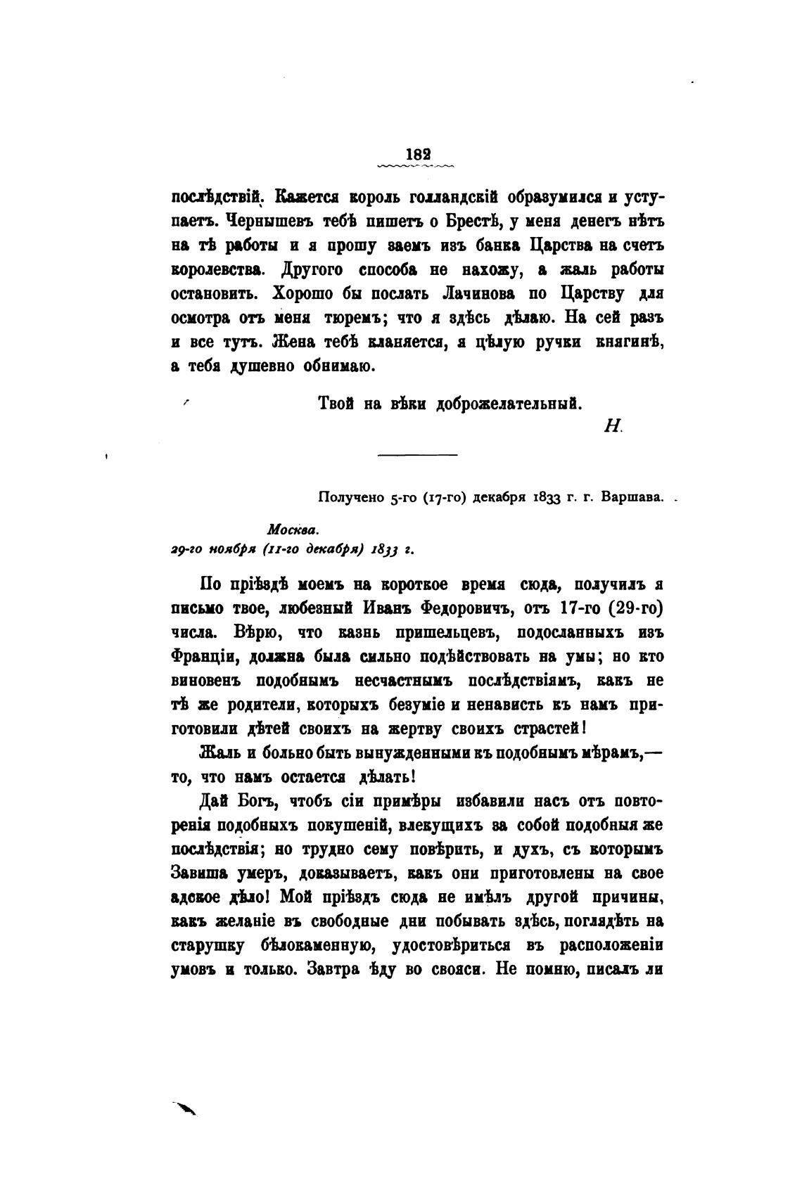 Получено 5-го (17-го) декабря 1833 г. г. Варшава.
