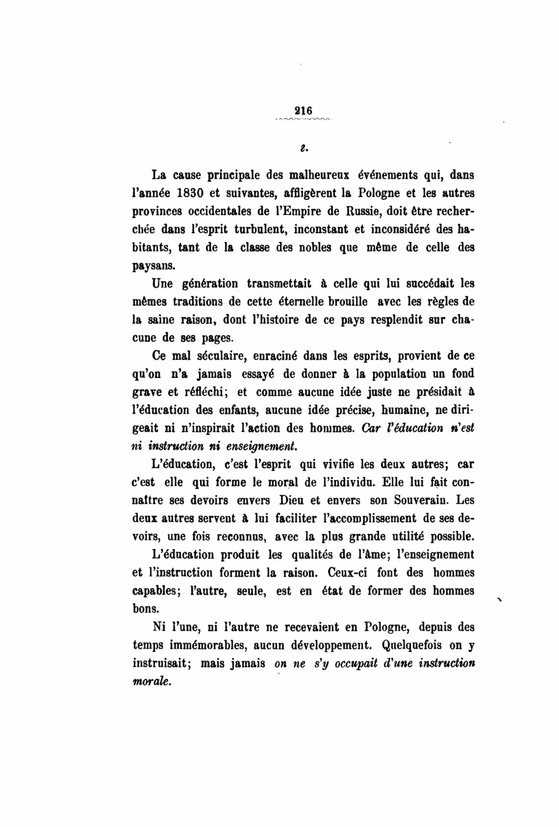 L'6ducation produit les qualitbs de l'Ame; l'enseignement