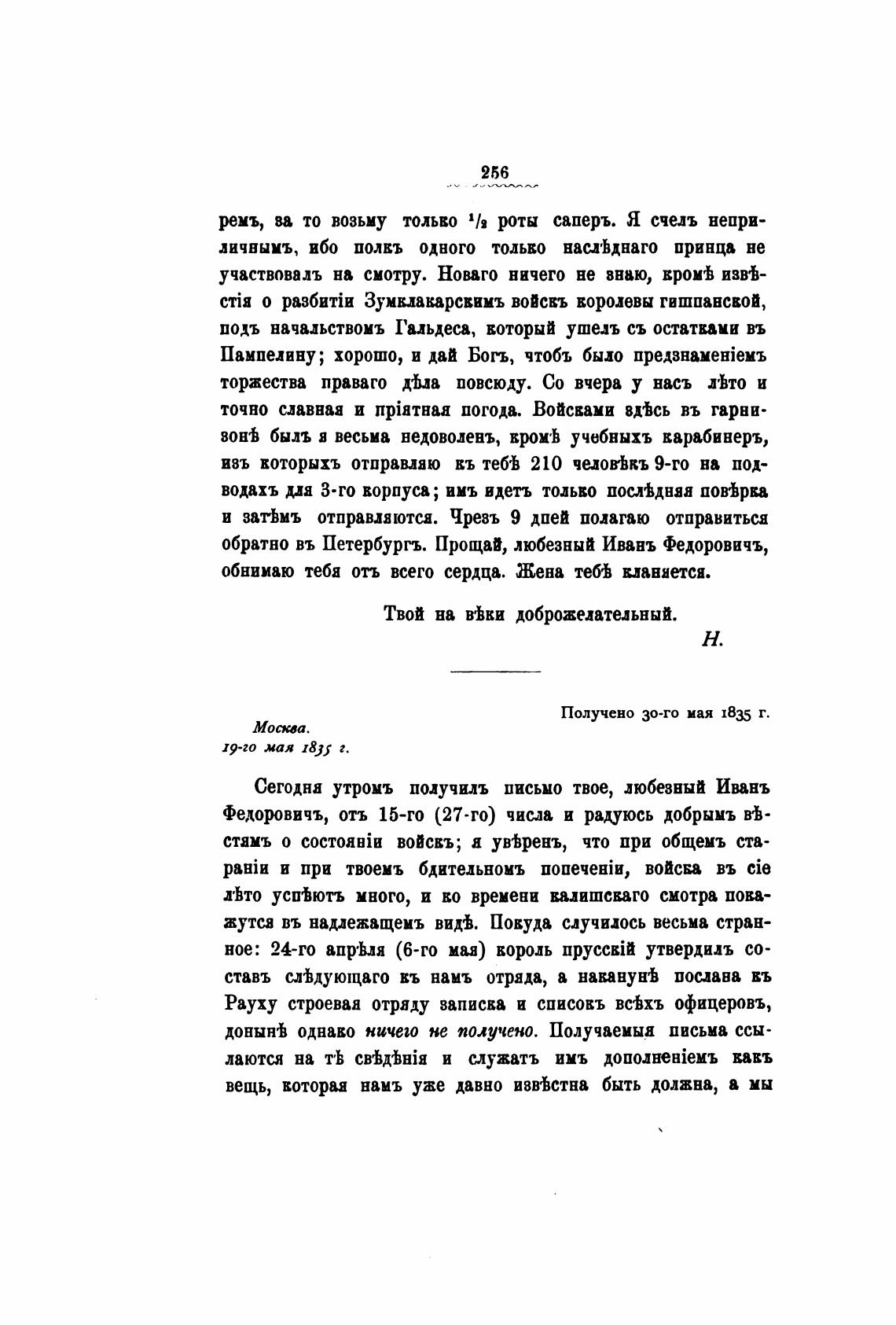 Получено 30-го мая 1835 г.